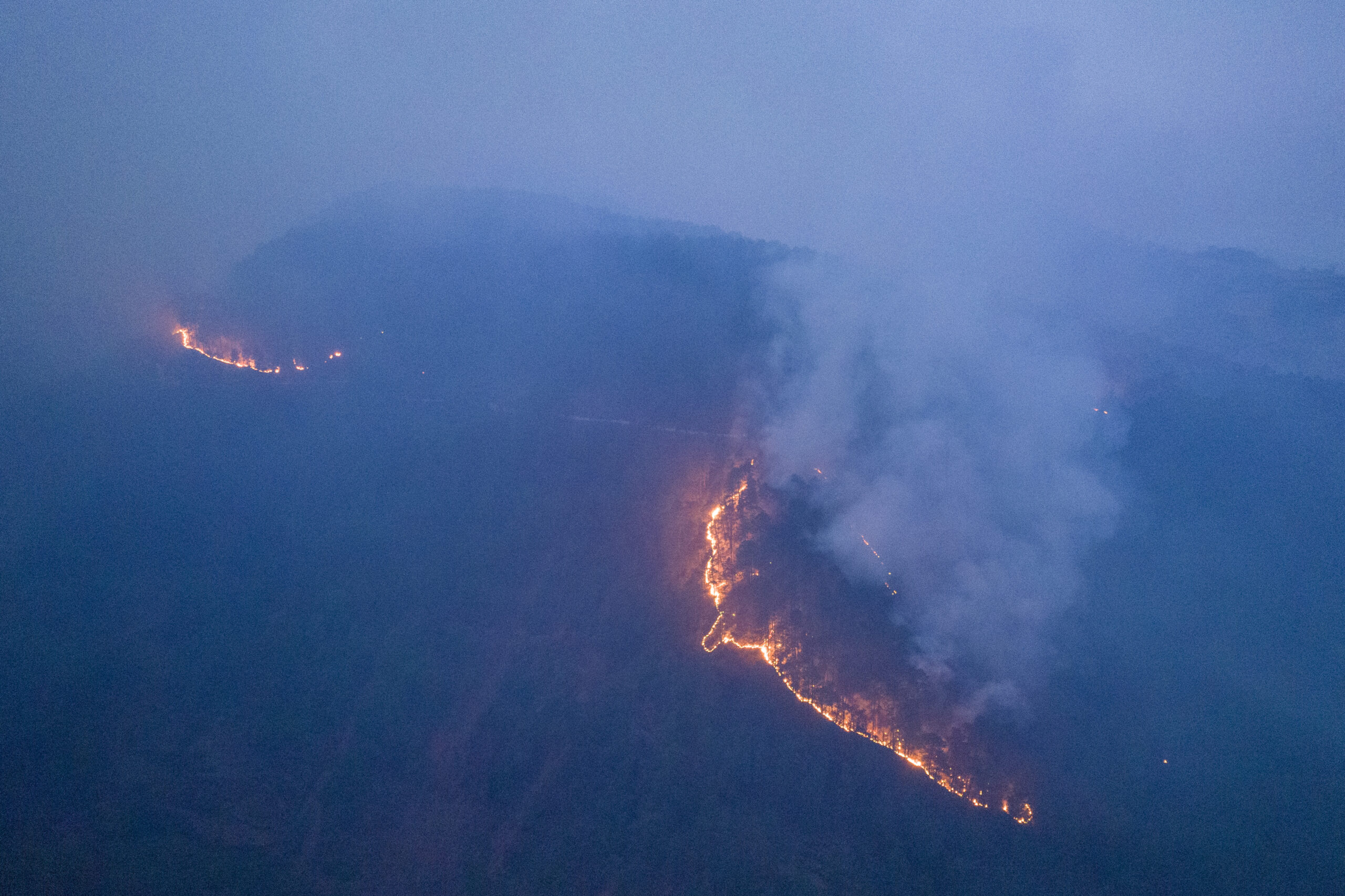 4月11日,据四川省凉山彝族自治州西昌市森林草原防灭火指挥部消息,4月10日15时55分,西昌市海南街道办民主村发生森林火情。经多方力量科学扑救,明火于4月11日10时50分被全部扑灭,全面转入清烟点、守余火阶段,没有造成人员伤亡和次生灾害。图为清晨的西昌市大兴乡一处山头还有清晰的火线。