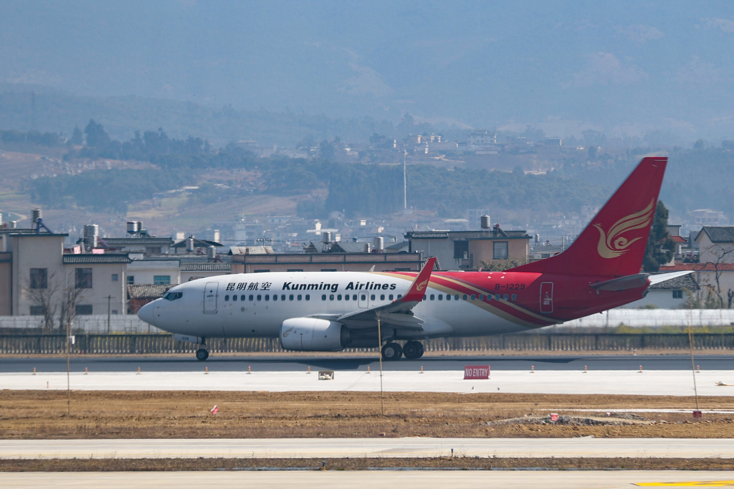 4月18日,中国民用航空局航空安全办公室副主任李勇透露,2023年一季度,民航经济运行持续恢复、逐步向好。一季度国内航空客运规模恢复至疫情前约九成。资料图为1月27日,一架民航客机准备从云南保山云瑞机场起飞。