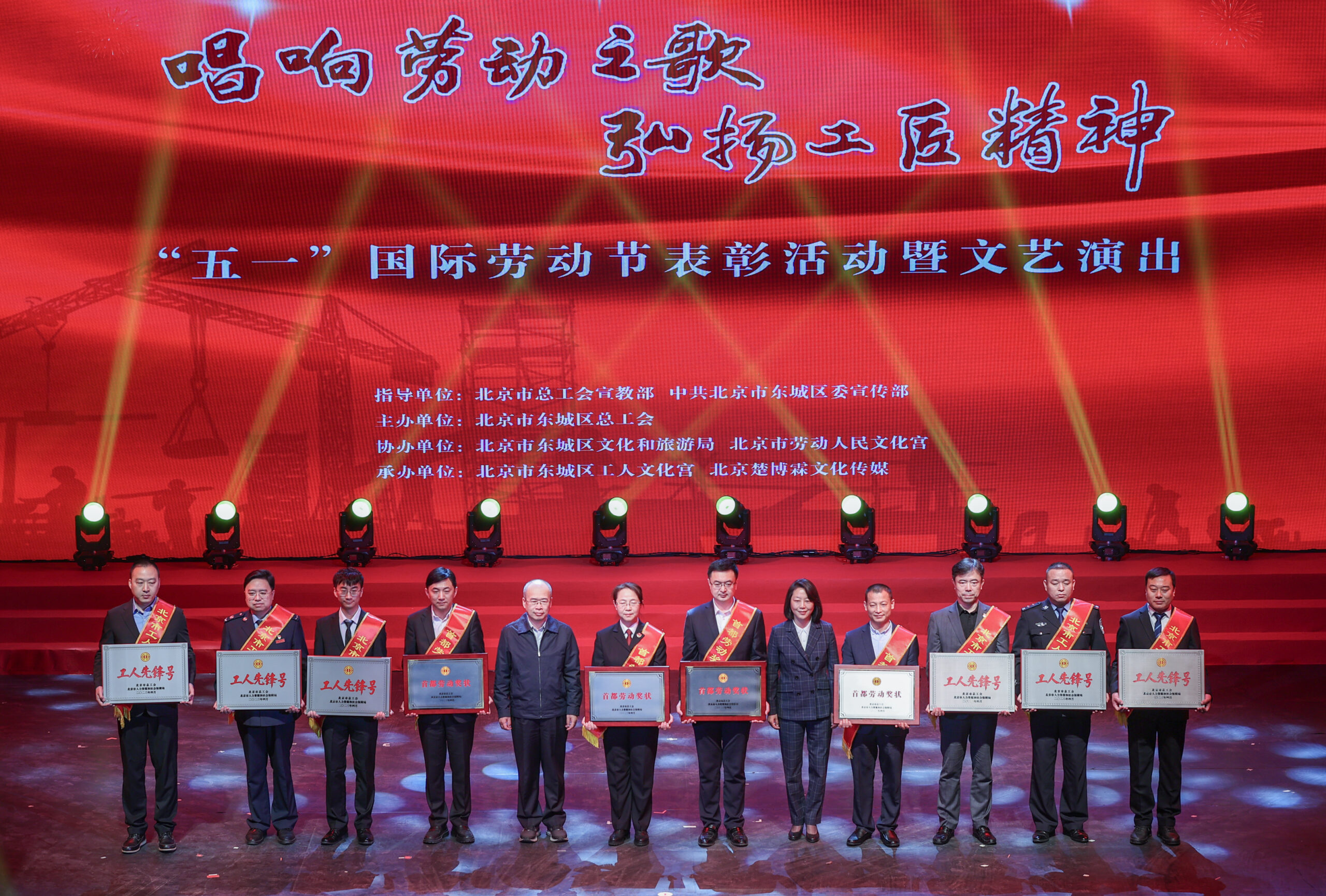 4月21日,北京市东城区举办“唱响劳动之歌 弘扬工匠精神”五一国际劳动节表彰活动暨文艺演出。现场为今年获得全国、首都劳动奖章的集体和个人颁奖。 未经允许不得转载:城市新闻网icitynews » 北京市东城区举办五一国际劳动节表彰活动暨文艺演出