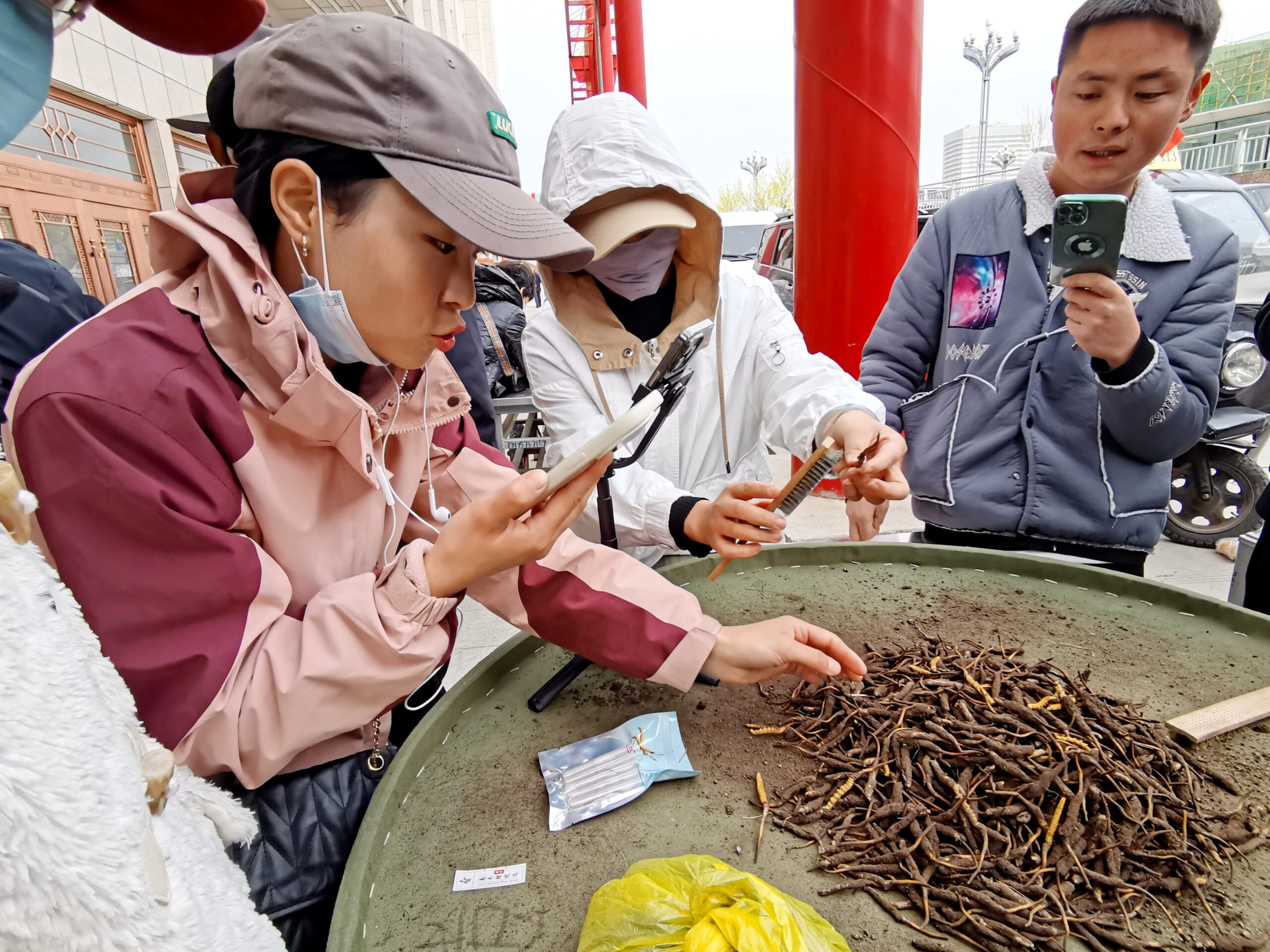 4月27日,青海省西宁市,冬虫夏草主播直播带货。青海省是中国冬虫夏草主要产区,据2021年的统计数据显示,该省冬虫夏草年产量80吨至100吨,年产值180亿元人民币至200亿元人民币。