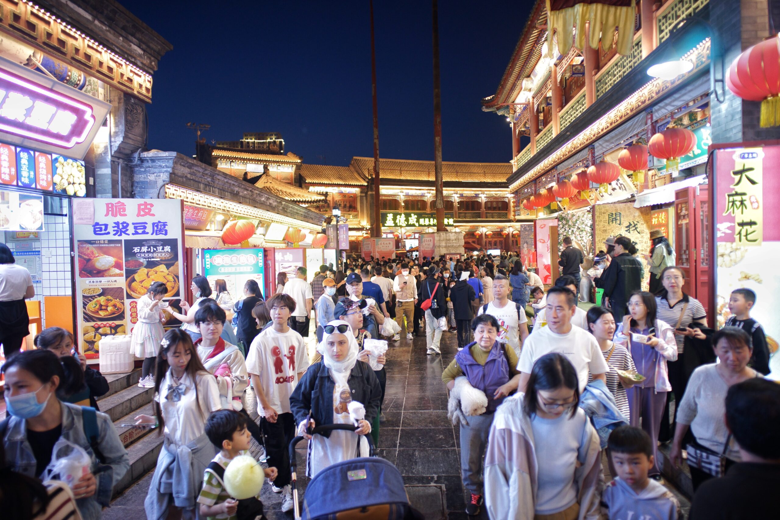 5月3日,中国文化和旅游部发布2023年“五一”假期文化和旅游市场情况。经中国文化和旅游部数据中心测算,全国国内旅游出游合计2.74亿人次,同比增长70.83%,按可比口径恢复至2019年同期的119.09%;实现国内旅游收入1480.56亿元人民币,同比增长128.90%,按可比口径恢复至2019年同期的100.66%。图为5月2日,中外游客在天津古文化街游玩。