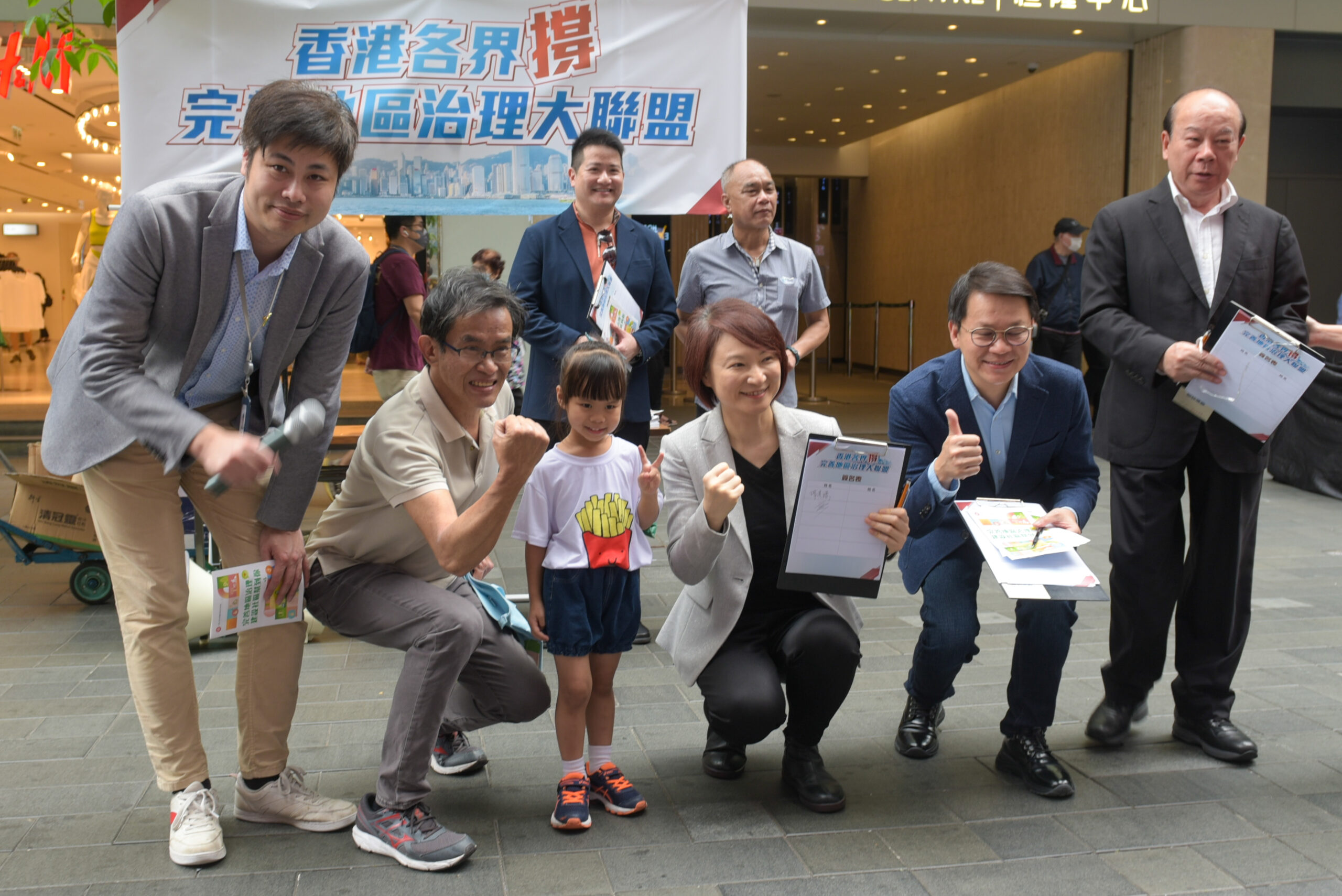 5月5日,“香港各界撑完善地区治理大联盟”在铜锣湾举行成立记者会。图为有市民签署支持完善地区治理建议方案后,为全国人大常委会委员李慧琼等人打气。 未经允许不得转载:城市新闻网icitynews » “香港各界撑完善地区治理大联盟”成立