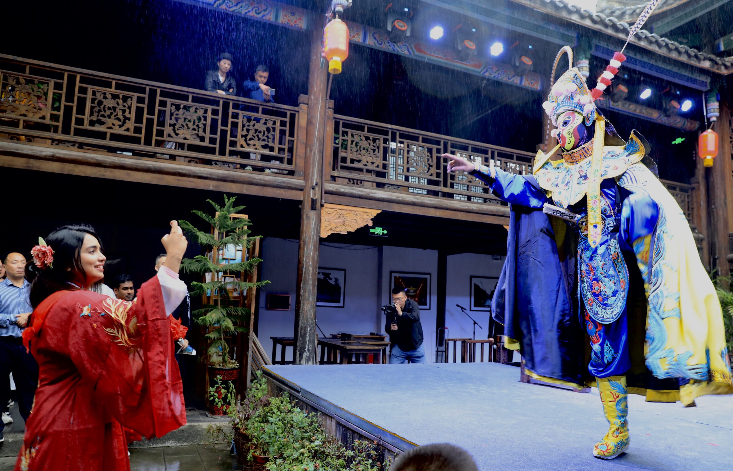 5月8日,四川广元,一位嘉宾拍摄川剧变脸表演。当日,“2023国际媒体人广元大蜀道采风行”启动仪式在四川省广元市昭化区举行。 未经允许不得转载:城市新闻网icitynews » “2023国际媒体人广元大蜀道采风行”启动 川剧变脸、茶艺表演引人目光