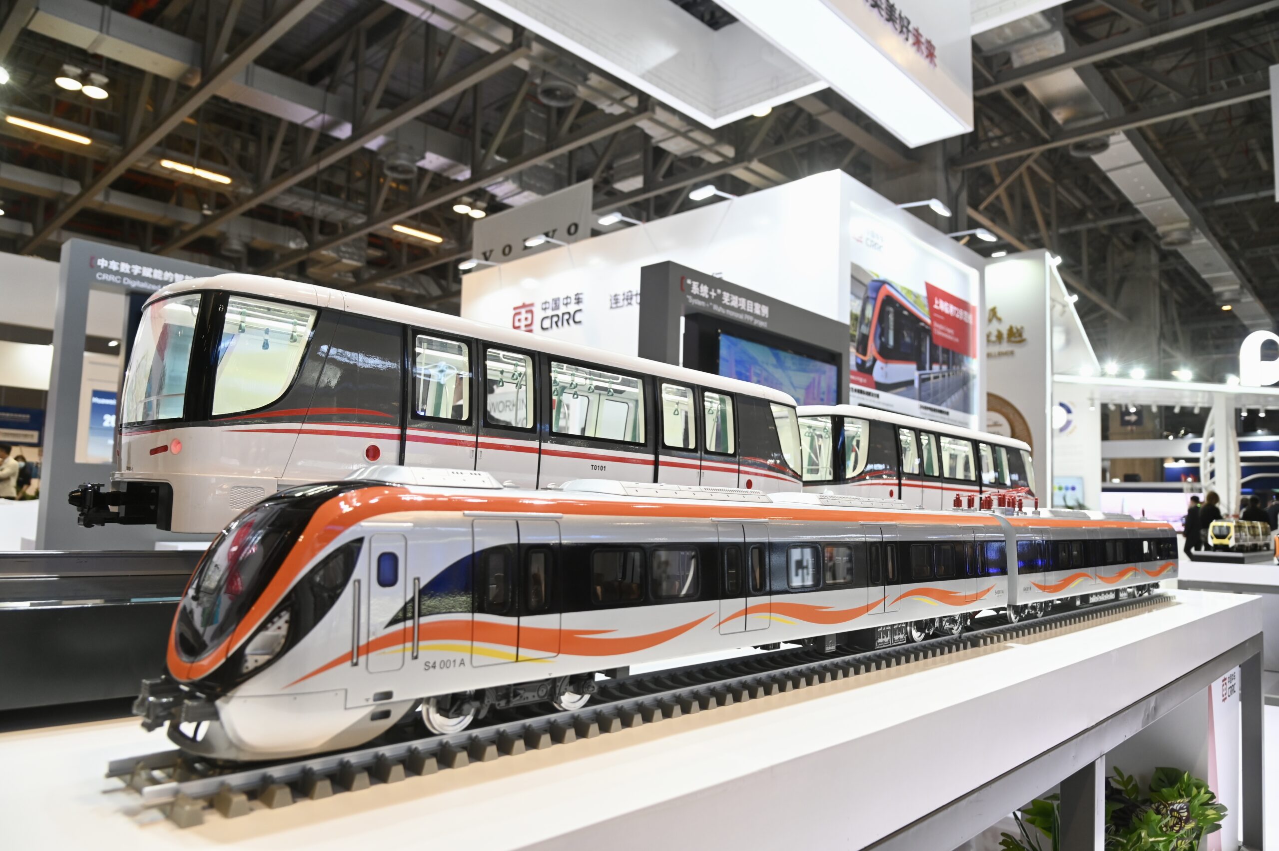 6月1日上午,第14届国际基础设施投资与建设高峰论坛于澳门举行,逾60个国家和地区超过800家单位的3000多名嘉宾参会,参会人数比上一届多一倍。论坛同期举行大型展览,多家大型企业展示最新的仪器及基建成果。图为捷运系统与市域D型车模型。