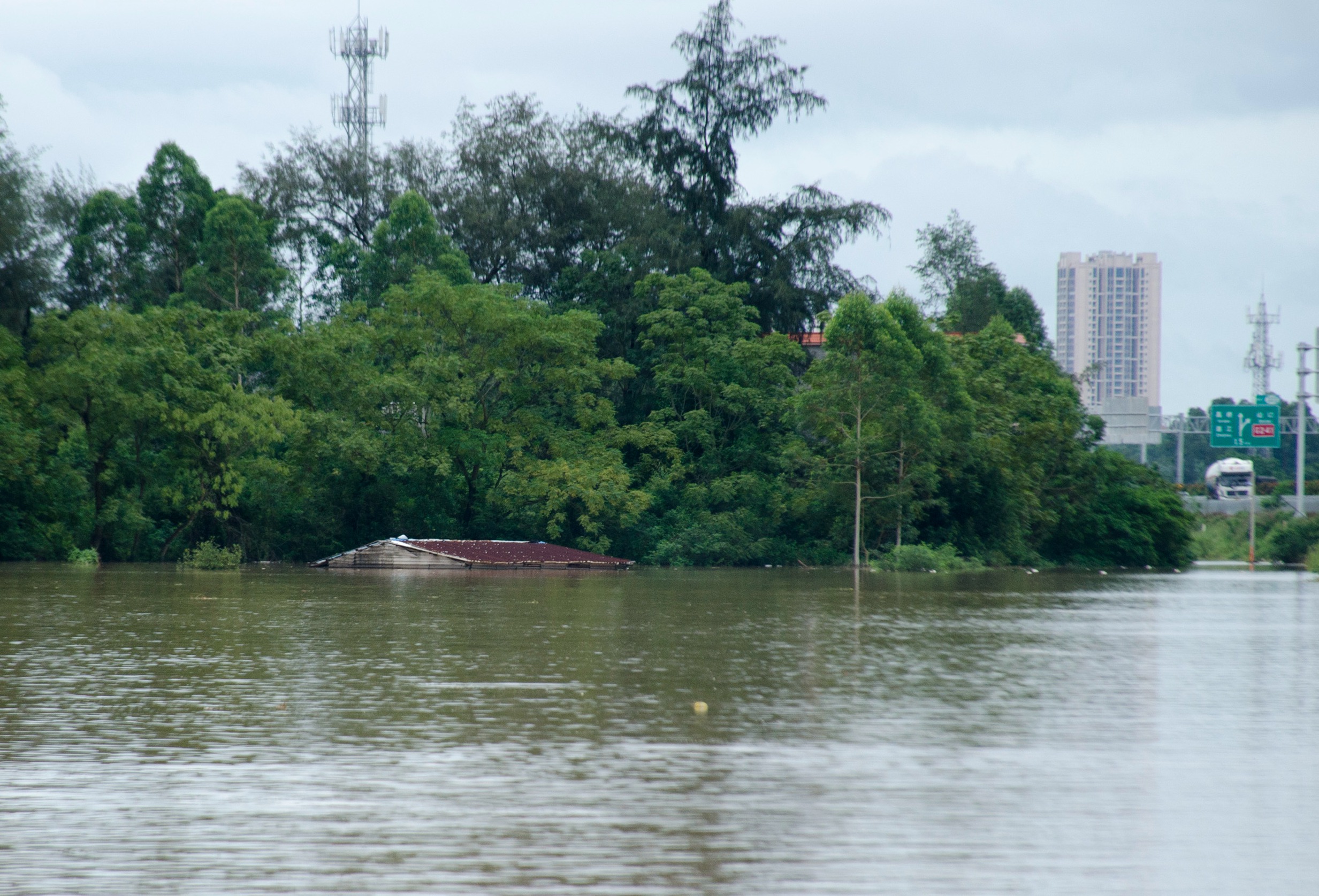 6月9日,因河水水位上涨,河水倒灌导致广西北海市合浦县白沙镇多个村庄受灾。目前,政府部门正在组织力量进行抢险救援。图为受灾区一片“汪洋”,一房屋浸泡在水里。 未经允许不得转载:城市新闻网icitynews » 河水倒灌致广西合浦县白沙镇多个村庄受灾