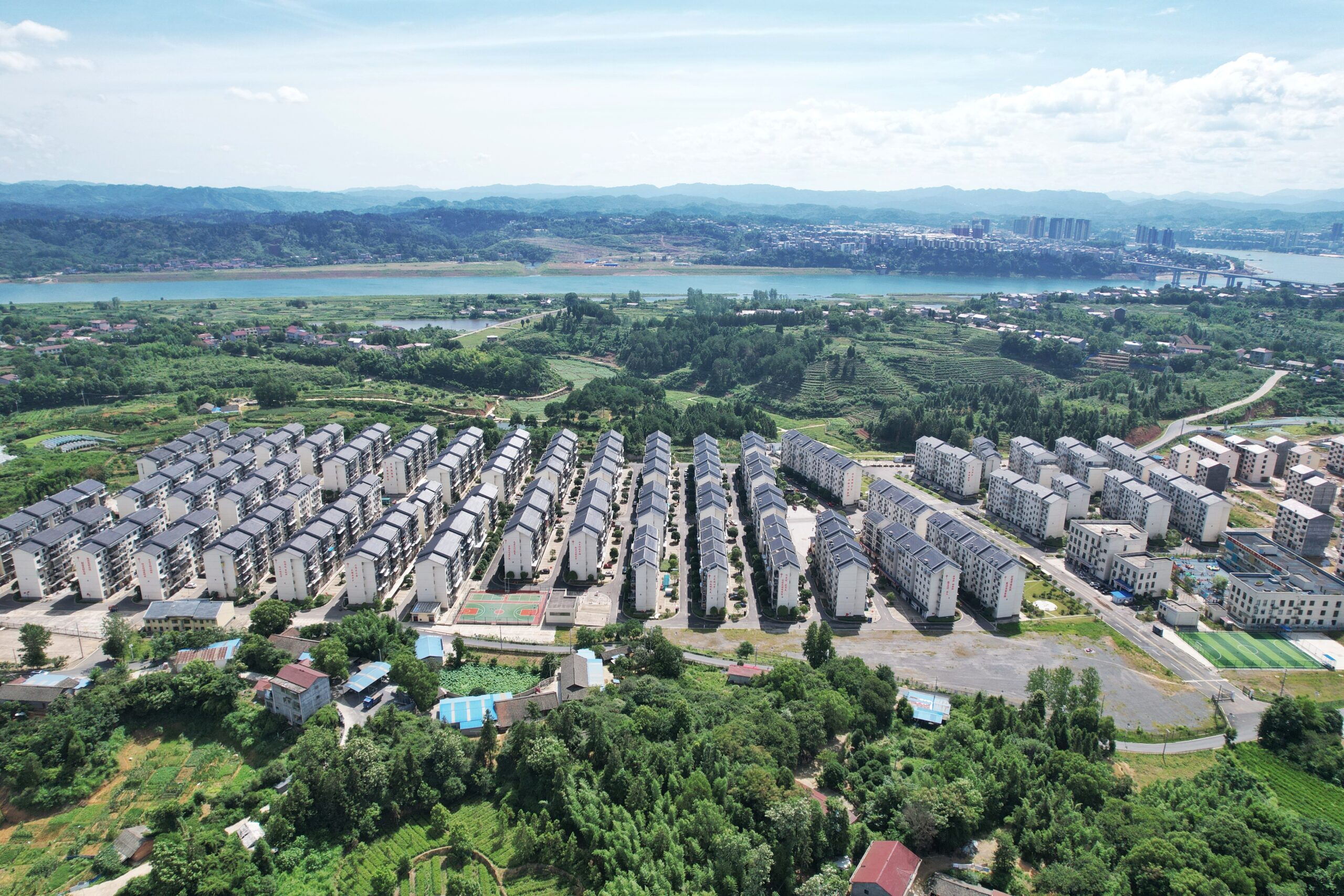 6月28日,航拍太安社区。当日,正在湖南参加“乡村振兴看湖南”——2023行走中国·海外华文媒体高层湖南行活动的19国华媒代表走进湖南沅陵县太安社区,该社区是湖南省占地面积最大的易地扶贫搬迁安置社区。据悉,5家企业在该社区开办就业帮扶车间,实现有就业能力和就业意愿的搬迁民众就业全覆盖。