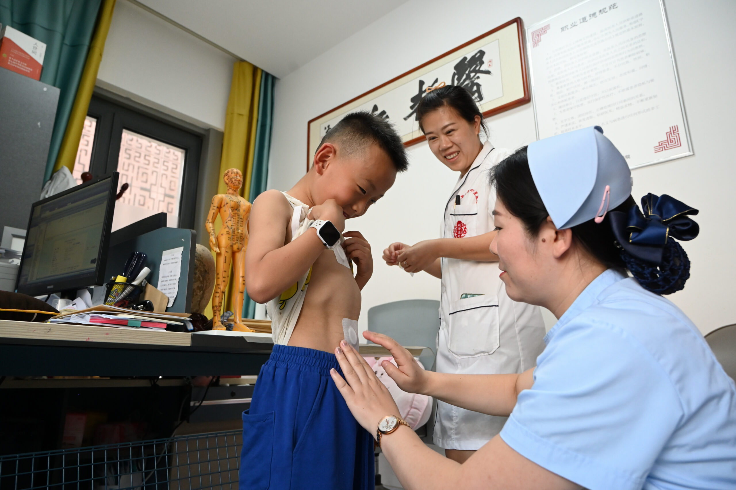 7月11日,入伏首日,在内蒙古呼和浩特市一医院内,医护人员为小朋友贴“三伏贴”。据悉,“三伏贴”是一种传统的冬病夏治疗法。 未经允许不得转载:城市新闻网icitynews » 呼和浩特:小朋友入伏贴“三伏贴”