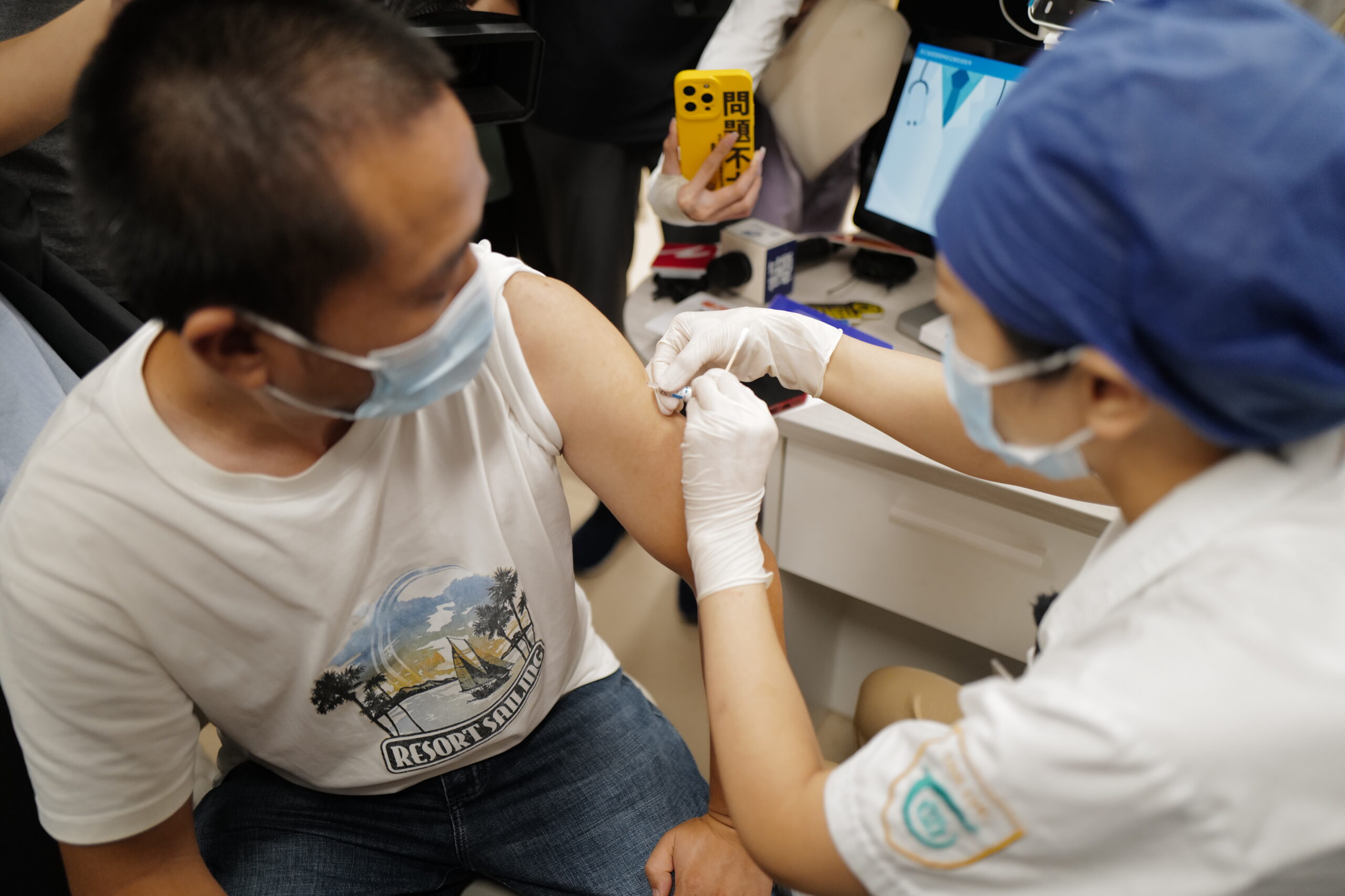7月14日,浙江杭州,医护人员为市民接种浙江省首针带状疱疹减毒活疫苗。当日,浙江省正式启动中国国内首个适用于40岁及以上人群的带状疱疹减毒活疫苗接种。 未经允许不得转载:城市新闻网icitynews » 浙江启动国产带状疱疹疫苗接种