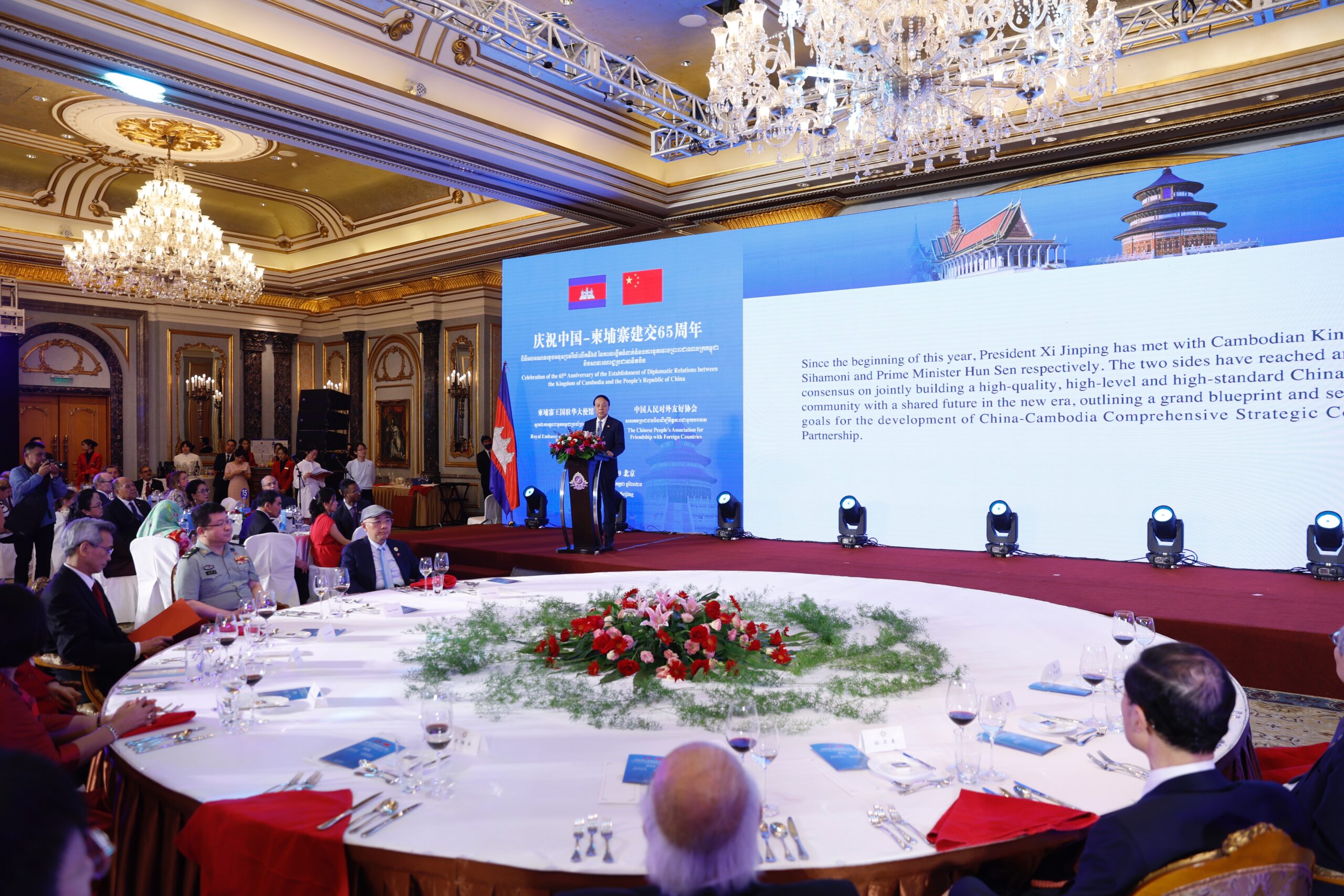 7月19日,中国人民对外友好协会与柬埔寨驻华大使馆在北京共同举办庆祝中柬建交65周年招待会。全国人大常委会副委员长武维华出席招待会并致辞。 未经允许不得转载:城市新闻网icitynews » 庆祝中柬建交65周年招待会在京举行