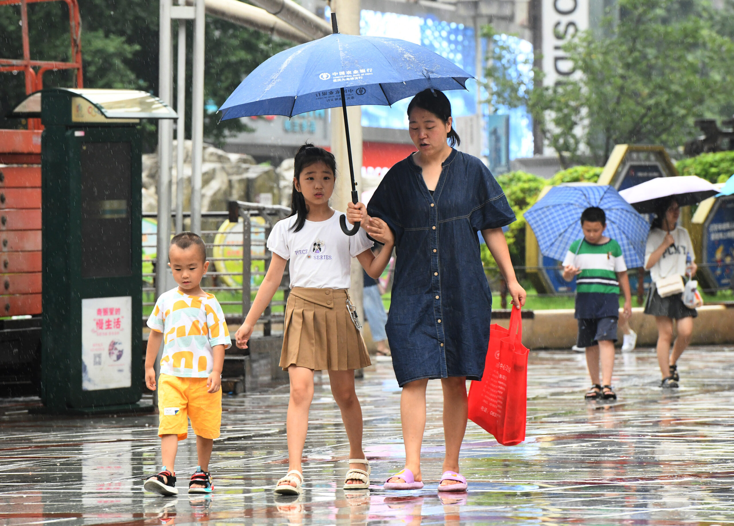 7月27日,重庆街头,民众冒雨出行。当日,重庆部分地区暴雨天气持续。重庆市气象台预计,当天白天到夜间,重庆大部地区有降雨,中西部有大到暴雨,局地有大暴雨。 未经允许不得转载:城市新闻网icitynews » 重庆暴雨持续