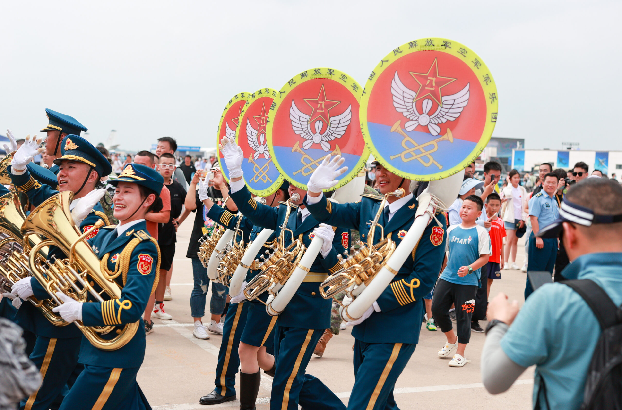 7月27日,吉林长春,2023年空军航空开放活动·长春航空展迎来首个公众开放日。图为空军军乐团的乐手向观众招手。 未经允许不得转载:城市新闻网icitynews » 2023年长春航空展:空军军乐团亮相