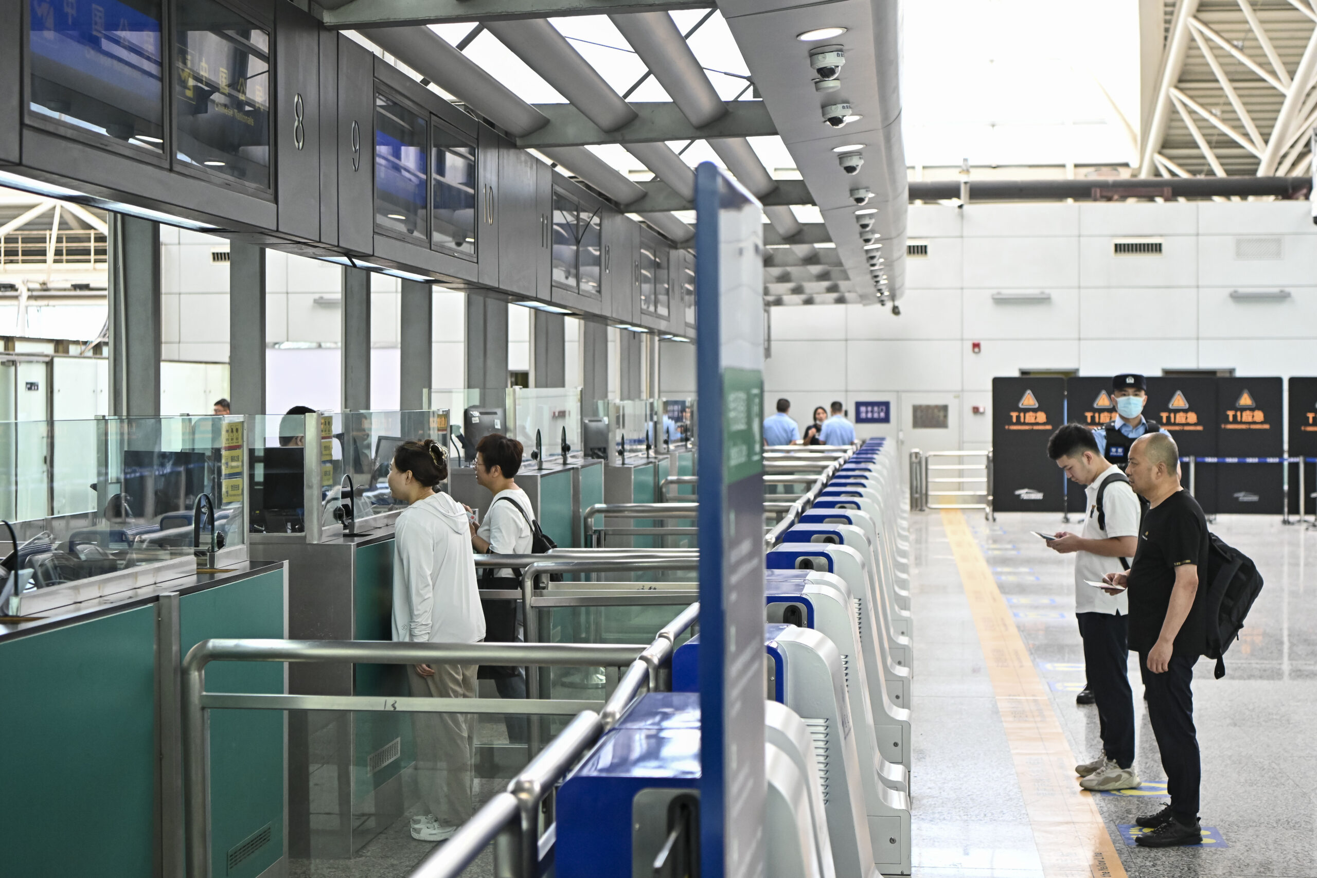 8月1日,广州白云机场T1航站楼东一指廊的出入境航班流程升级工作完成并开放使用,14家中外航空公司的国际客运航班重新回到T1航站楼运行。图为旅客在广州白云机场T1航站楼内办理登机手续。