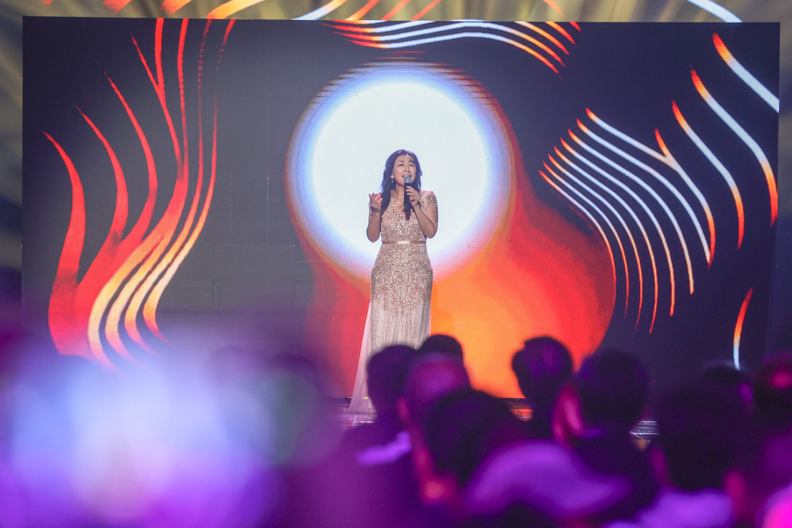 8月22日晚,第四届庐山国际爱情电影周主题盛典晚会在江西九江庐山风景名胜区举行。图为晚会现场,日本女歌手小野丽莎登台献唱爱情歌曲。 未经允许不得转载:城市新闻网icitynews » 第四届庐山国际爱情电影周主题盛典晚会举行