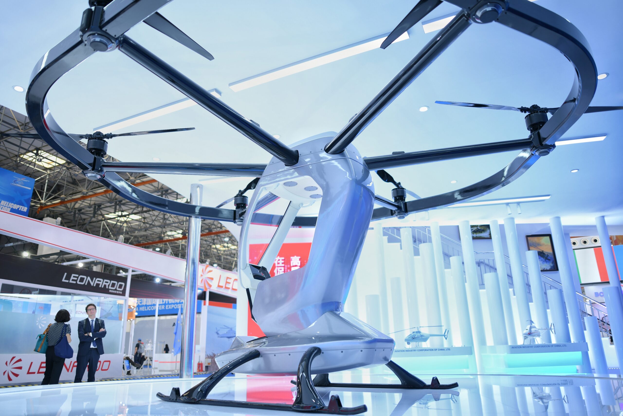 9月14日,与会者参观“旋戈-300”飞行器。当日,第六届中国天津国际直升机博览会在天津市空港经济区开幕。为期四天的博览会吸引了来自全球20多个国家和地区的350余家直升机企业齐聚津门。
