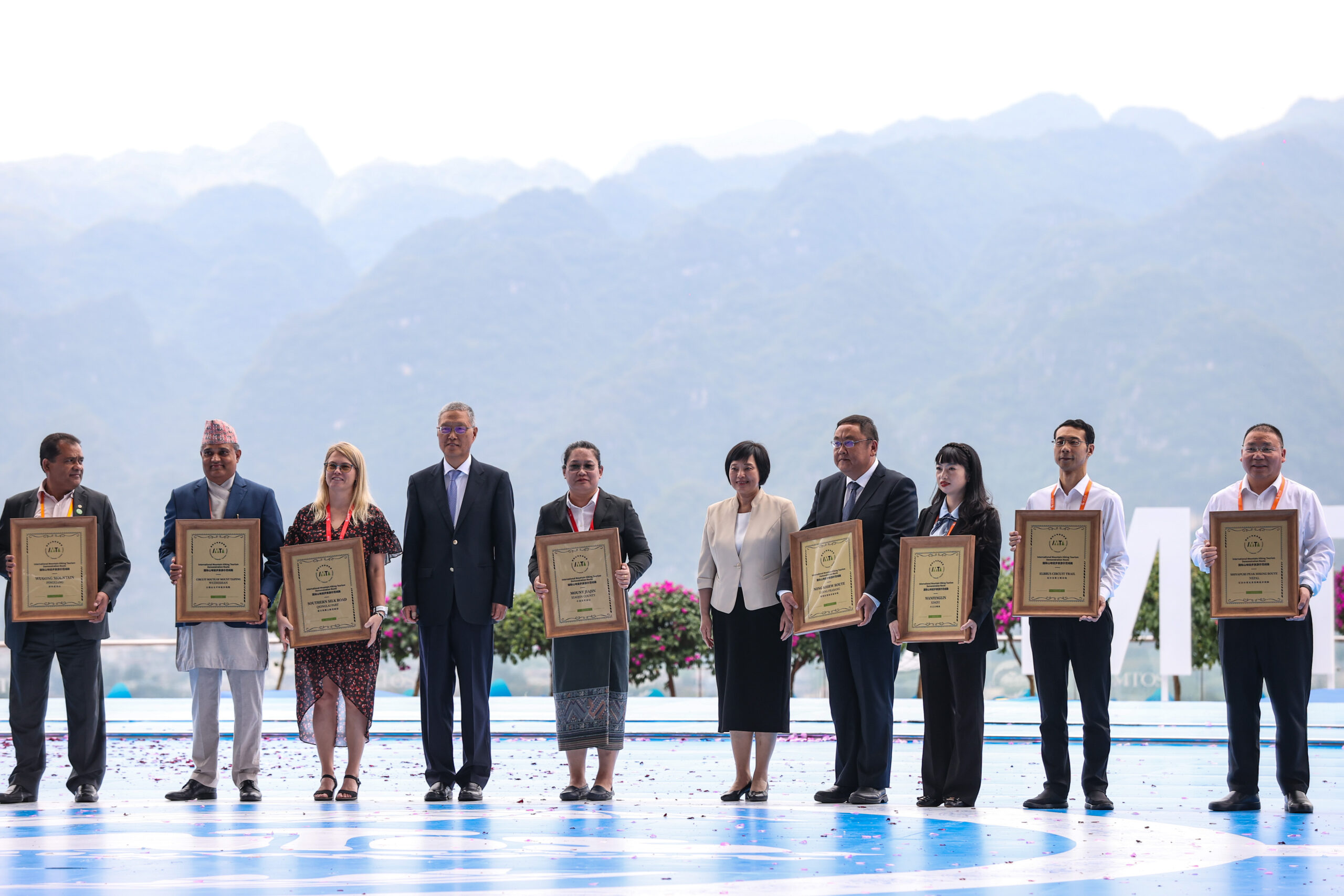 9月16日,2023国际山地旅游暨户外运动大会在贵州省黔西南布依族苗族自治州兴义市开幕。图为国际山地徒步旅游示范线授牌仪式。 未经允许不得转载:城市新闻网icitynews » 2023国际山地旅游暨户外运动大会开幕