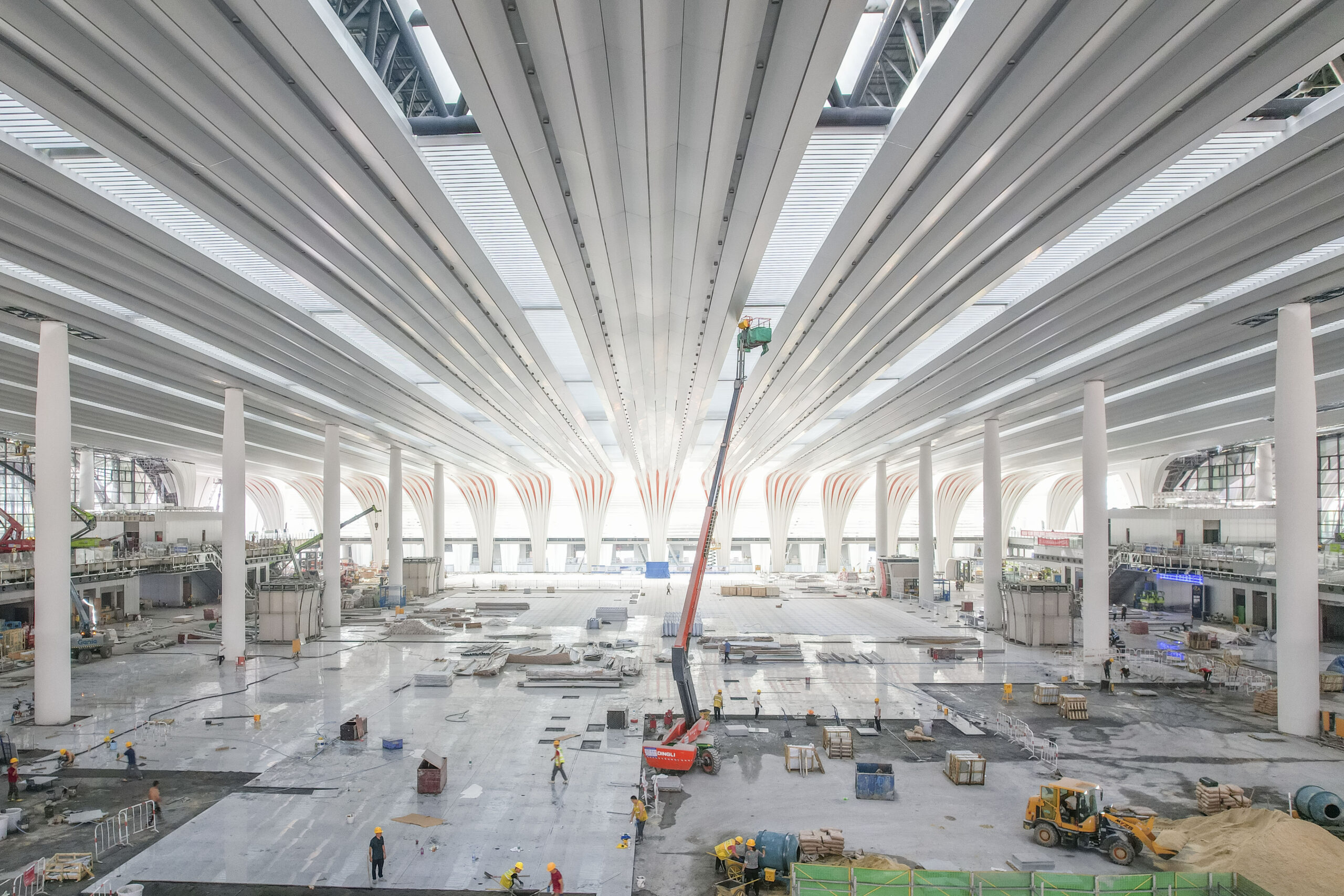 10月4日,广东省广州市,建设中的白云站候车大厅。中铁建工集团广州白云站项目是粤港澳大湾区首个在建的按现代综合交通枢纽规划建设理念打造的特大型枢纽工程,目前已全面进入室内外装饰装修阶段。