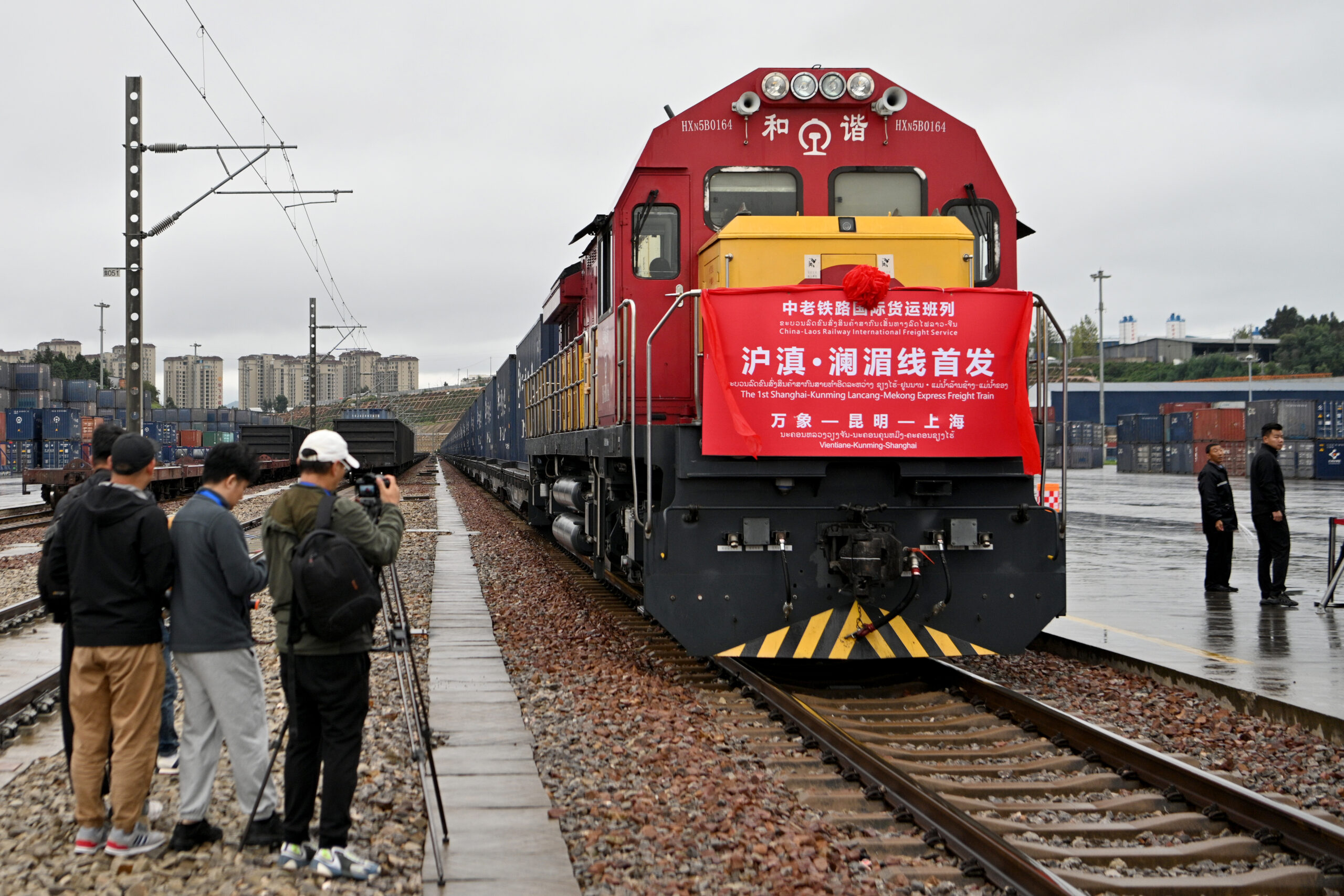 10月8日,“沪滇·澜湄线”国际货运班列在云南省昆明市王家营西站举行首发仪式,标志着这趟国际货运班列正式开行。图为首发仪式现场。 未经允许不得转载:城市新闻网icitynews » “沪滇·澜湄线”国际货运班列正式开行
