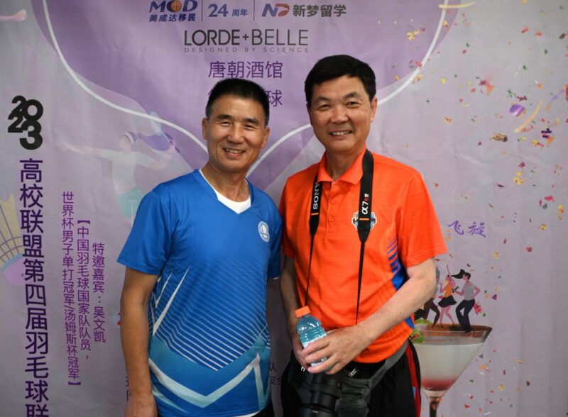 陈晓山(右)、吴晓山(左)羽毛球赛场相见欢