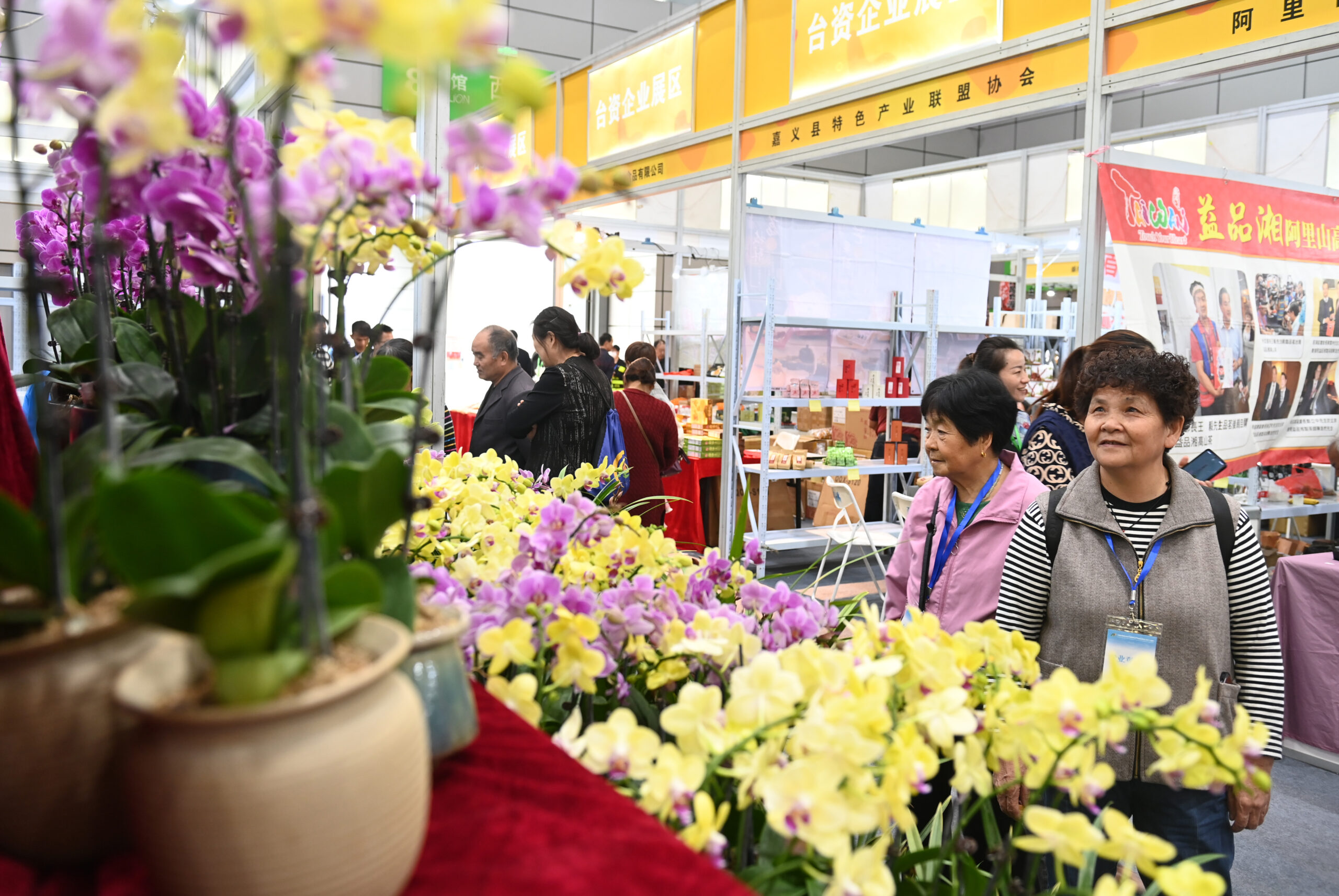 10月13日,中国安徽名优农产品暨农业产业化交易会(2023•合肥)在安徽省合肥市开幕。本届合肥农交会报名参展参会客商超2万人,参展产品3万多种。图为在台企展区,兰花吸引民众驻足观赏。