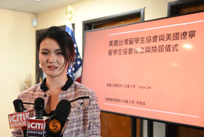 美国辽宁留学生协会主席宋格瑄接受各大媒体记者访问