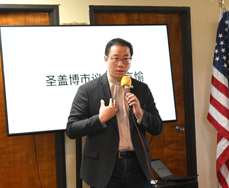 圣盖博市议员丁言喻接受各大媒体记者访问