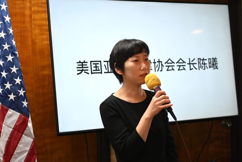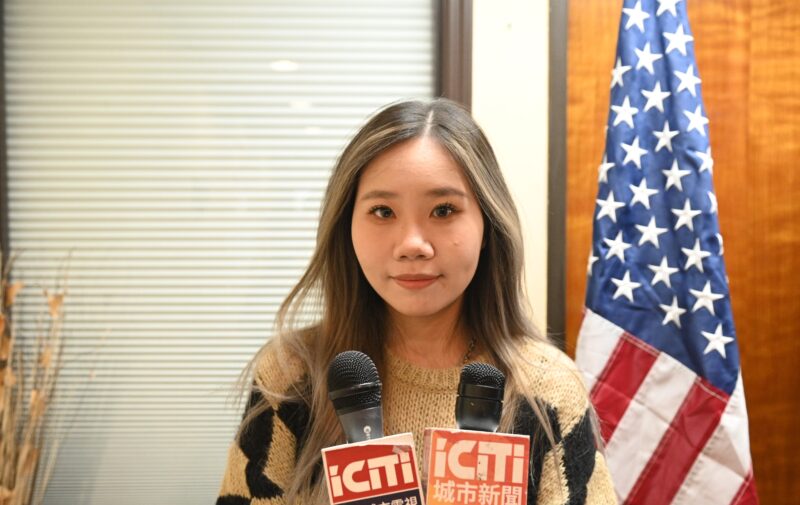 美国留学生协会联盟外联部长胡嵐心接受各大媒体记者访问