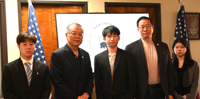 圣盖博副市长吴程远、市议员丁言喻与美国台湾留学生协会主席李宝安、副主席陈昱章,秘书长佘允文