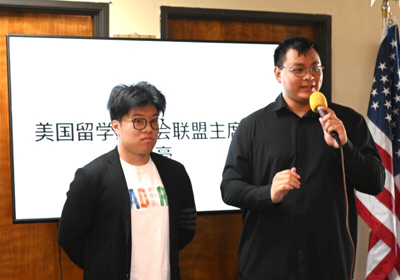 美国留学生协会联盟主席董智豪(右)和副主席陆尧致词