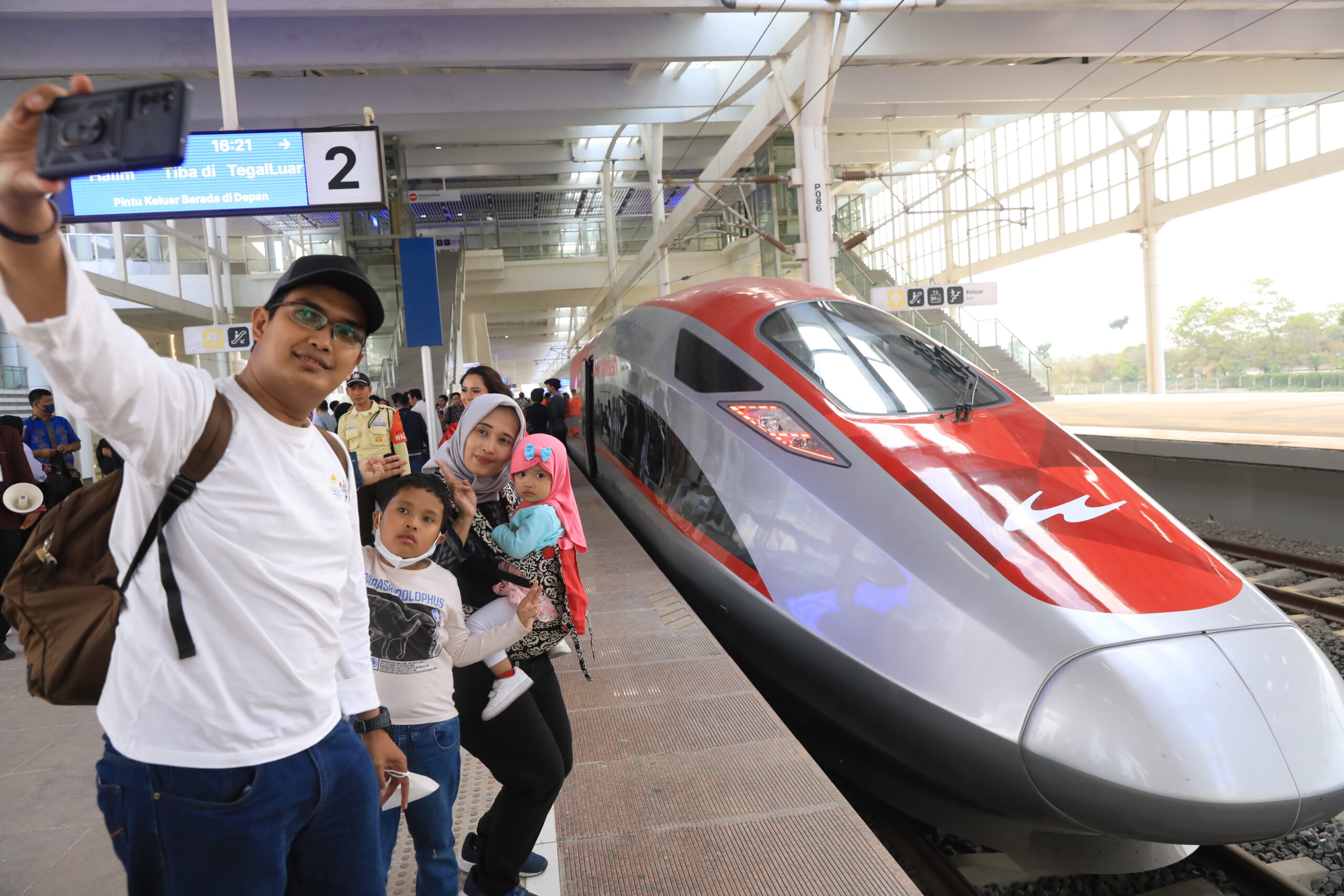 当地时间10月17日,印尼万隆德卡鲁尔站,印尼一家四口在列车前拍照合影。当日,印尼雅加达至万隆高速铁路正式开通运营。这标志着印尼迈入高铁时代,中印尼共建“一带一路”取得重大标志性成果。