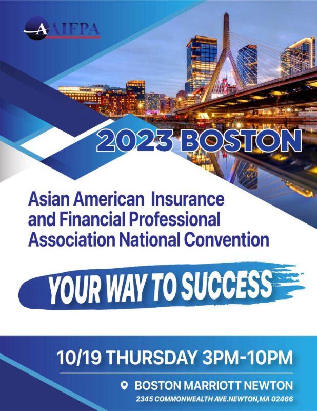 AAIFPA, Asian American Insurance and Financial Professional Association 美国亚裔保险理财协会2023年盛大年会于2023年10月19日在波士顿的Boston Marriott Newton大酒店隆重举行。来自全美各地的专业会员、保险理财、地产、金融界精英,以及美国主流政界、美国顶尖金融保险公司代表、会计师、律师等行业翘楚共400余人共襄盛举。