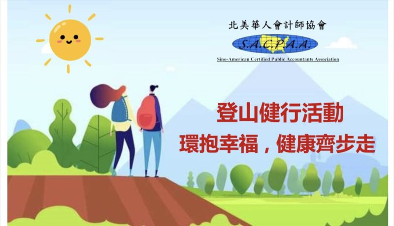 城市新闻10月20日洛杉矶报导,北美华人会计师协会將於10月21日(星期六)舉辦登山健行活動,環抱幸福。会长张青会计师已發出邀請,健康齊步走 準備出發喽。