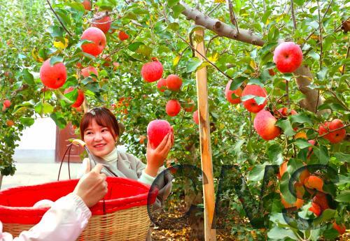 10月23日,新疆阿克苏地区首届苹果文化旅游节暨采摘季活动在阿克苏温宿县开幕。阿克苏是新疆的优质特色果品主产区,拥有14个地理标志证明商标。目前,全地区苹果种植总面积50.48万亩,总产量81.72万吨,已形成苹果种植、生产、加工、销售、观光旅游等为一体的“三产”融合发展新模式。图为游人体验采摘乐趣。