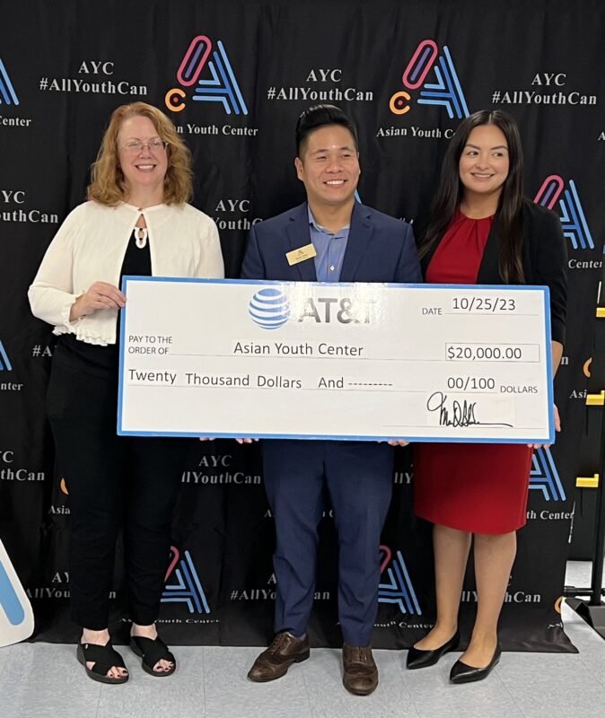 加利福尼亚州圣盖博市 – 亚裔青少年中心(AYC)自豪地宣布,2023年10月25日,AT&T捐赠了2万美金,以支持青少年和家长领导发展计划(YPLD)的软硬体设备技术。
