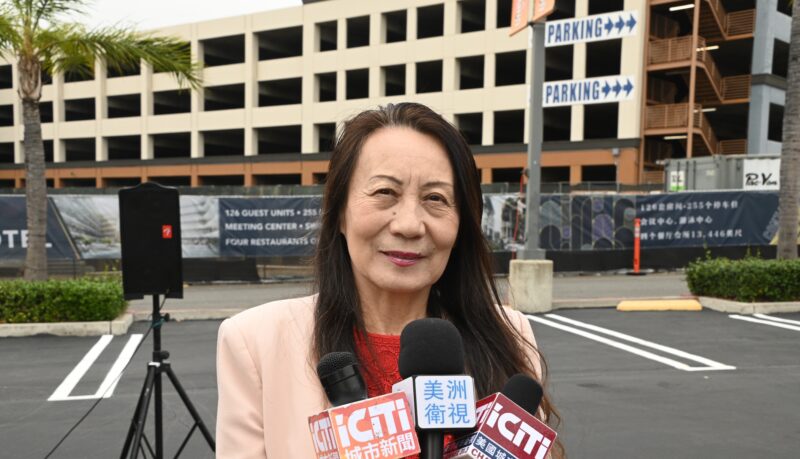 河滨市市长Patricia Lock Dawson 、市议员 Clarissa Cervantes向大学校园酒店LP总裁国华、永恒区域中心总裁秦智、普洛米国际投资公司首席执行官 Kristine Li颁发表扬状