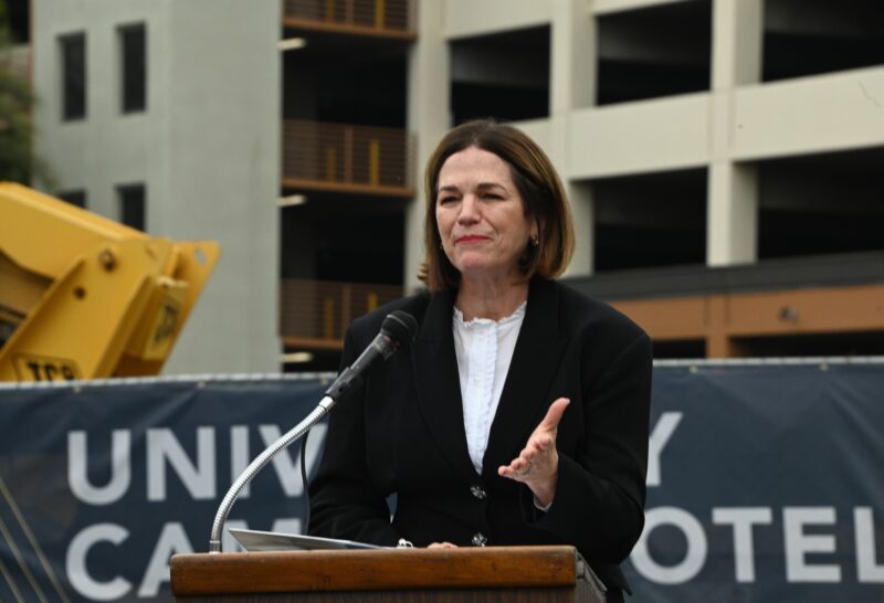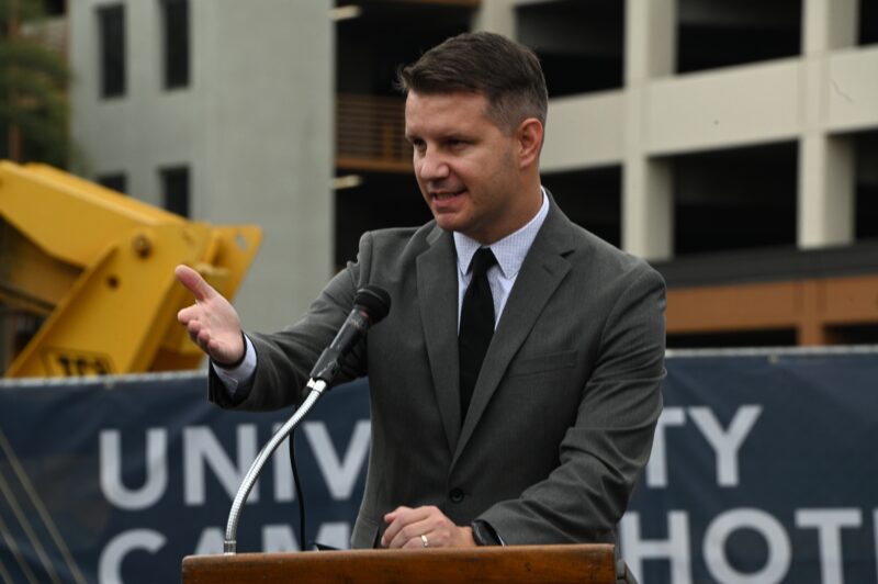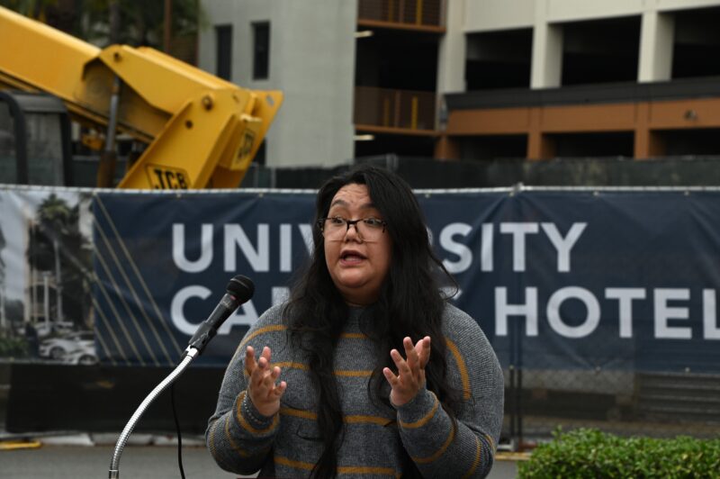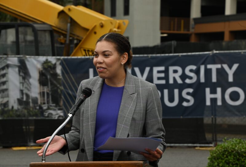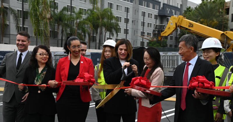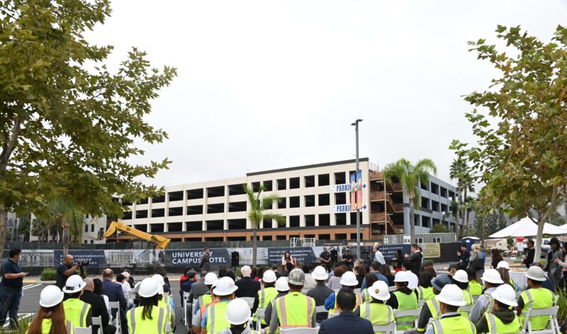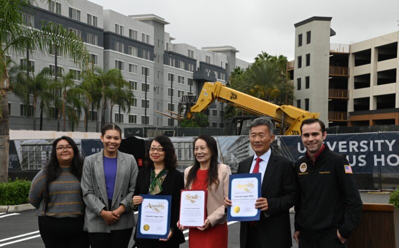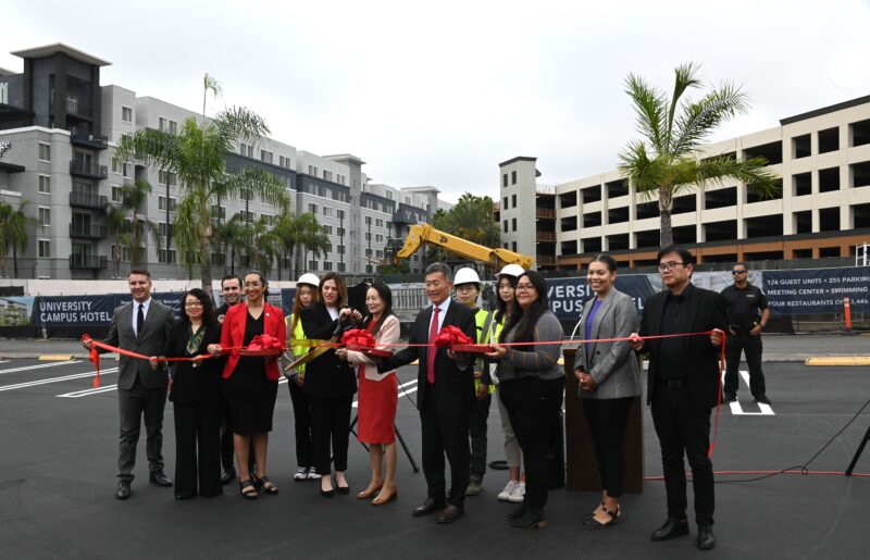 城市新闻10月25日河滨报导,永恒区域中心打造的酒店式学生公寓已矗立在University Village中心广场上 ,疫情之后再次开工剪彩,河滨市市长Patricia Lock Dawson 、市议员 Clarissa Cervantes 、加州参议员Richard Roth代表、大河滨地区商会董事局主席Bob Mendez等政要名流一百多人参加剪彩盛典。