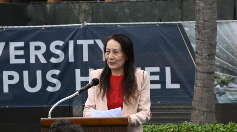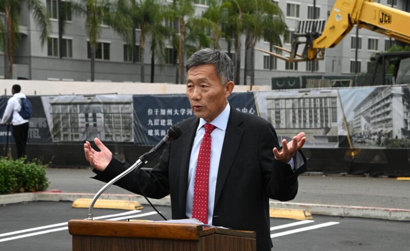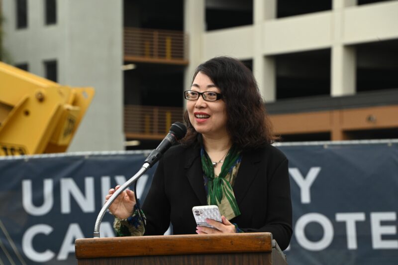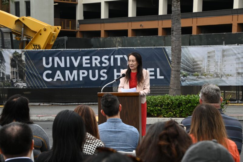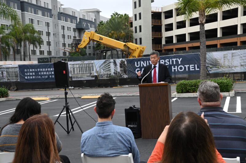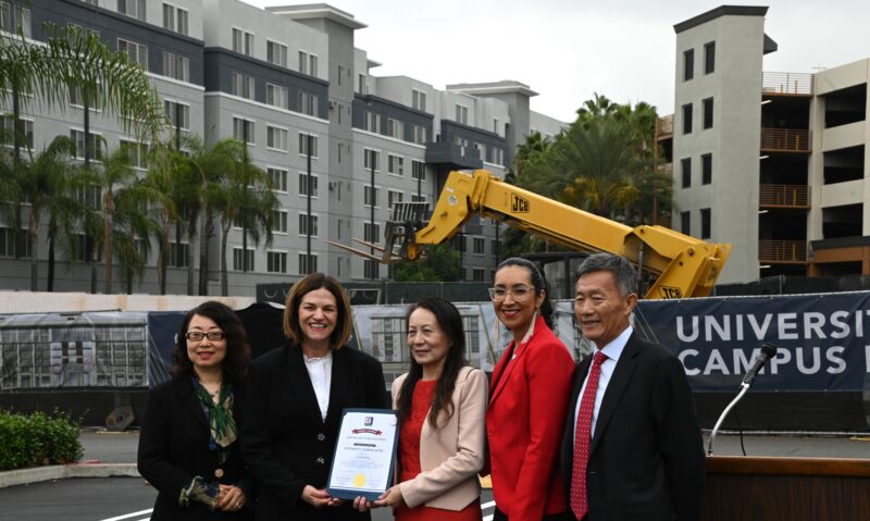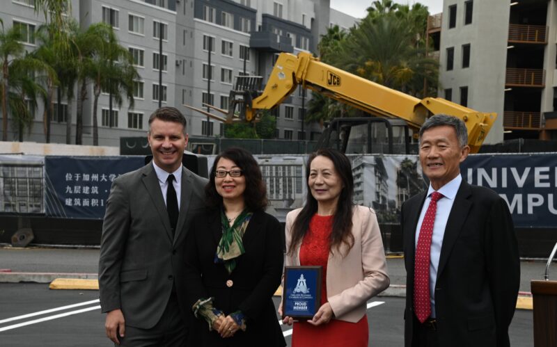 河滨市市长Patricia Lock Dawson 、市议员 Clarissa Cervantes 、加州参议员Richard Roth代表等先后致词,热烈祝贺永恒区域中心酒店式学生公寓再次开工,公寓工程也抓紧时机,即将竣工。他们向大学校园酒店LP总裁国华、永恒区域中心总裁秦智、普洛米国际投资公司首席执行官 Kristine Li颁发表扬状,表彰他们为河滨市发展作出积极贡献,为当地不少美国人创造就业机会,为市政府增加税收。