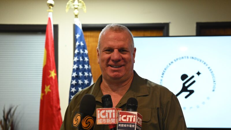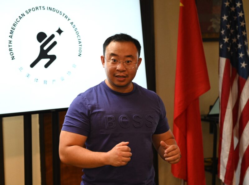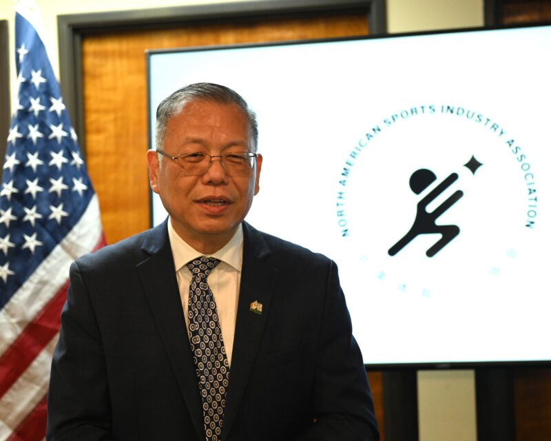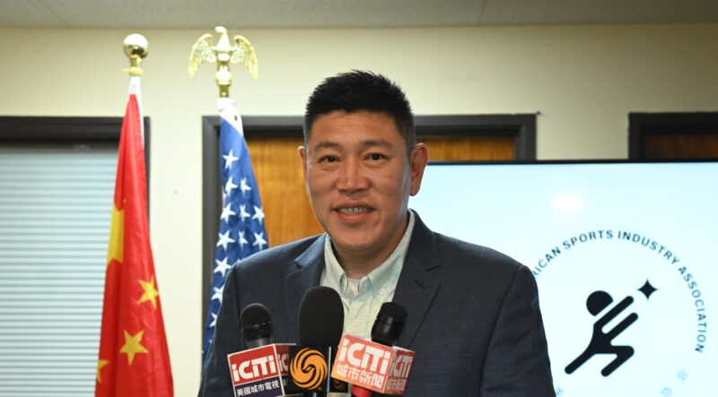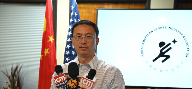 北美体育产业协会会长马鸣接受各大媒體記者訪問