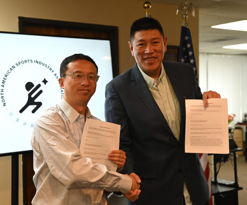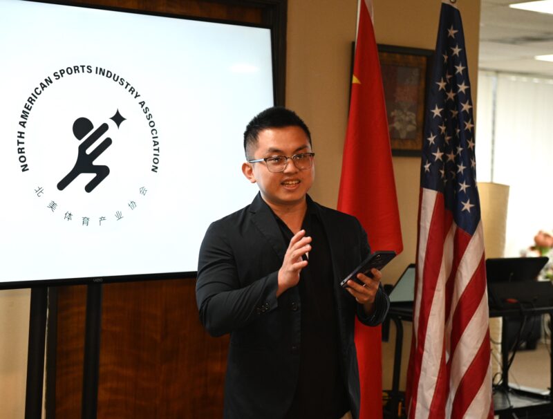 城市新闻10月25日亚凯迪亚市报导,北美体育产业协会与中方维智数字体育代表团在Arcadia市举行「美国篮球传奇巨星中国巡回赛战略合作签约仪式」,这标志着中美体育产业领域合作正在开创全新互动交流平台,具极其重要的历史意义。北美体育产业协会秘书长吴宇宙主持会议。