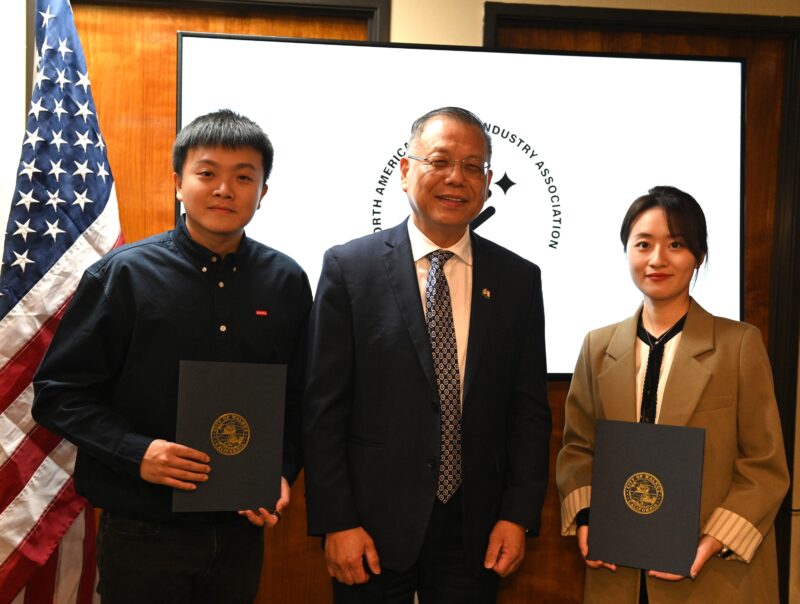北美体育产业协会会长马鸣(右)、丝雅文化传媒首席执行官贺含晨