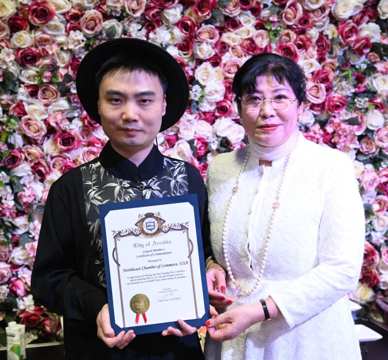 会长江风年会长致词表示,美国大西北总商会成立已有八年,得到了多个企业社团的大力支持和帮助,感谢各兄弟社团的合作。通过王长胜会长的牵线,很荣幸邀请到赫拉含青从四川赶到洛杉矶,为美国大西北总商会成立大会义务演出,成立大会取得了圆满成功。在各兄弟社团大力支持和帮助下,美国大西北总商会在促进中美经贸合作、文化艺术交流和人才交流等方面,一直发挥着积极的作用。今次赫拉含青先生的洛杉矶粉丝见面会是我们推展“中美友好、和谐共赢”民间交流又一行动。