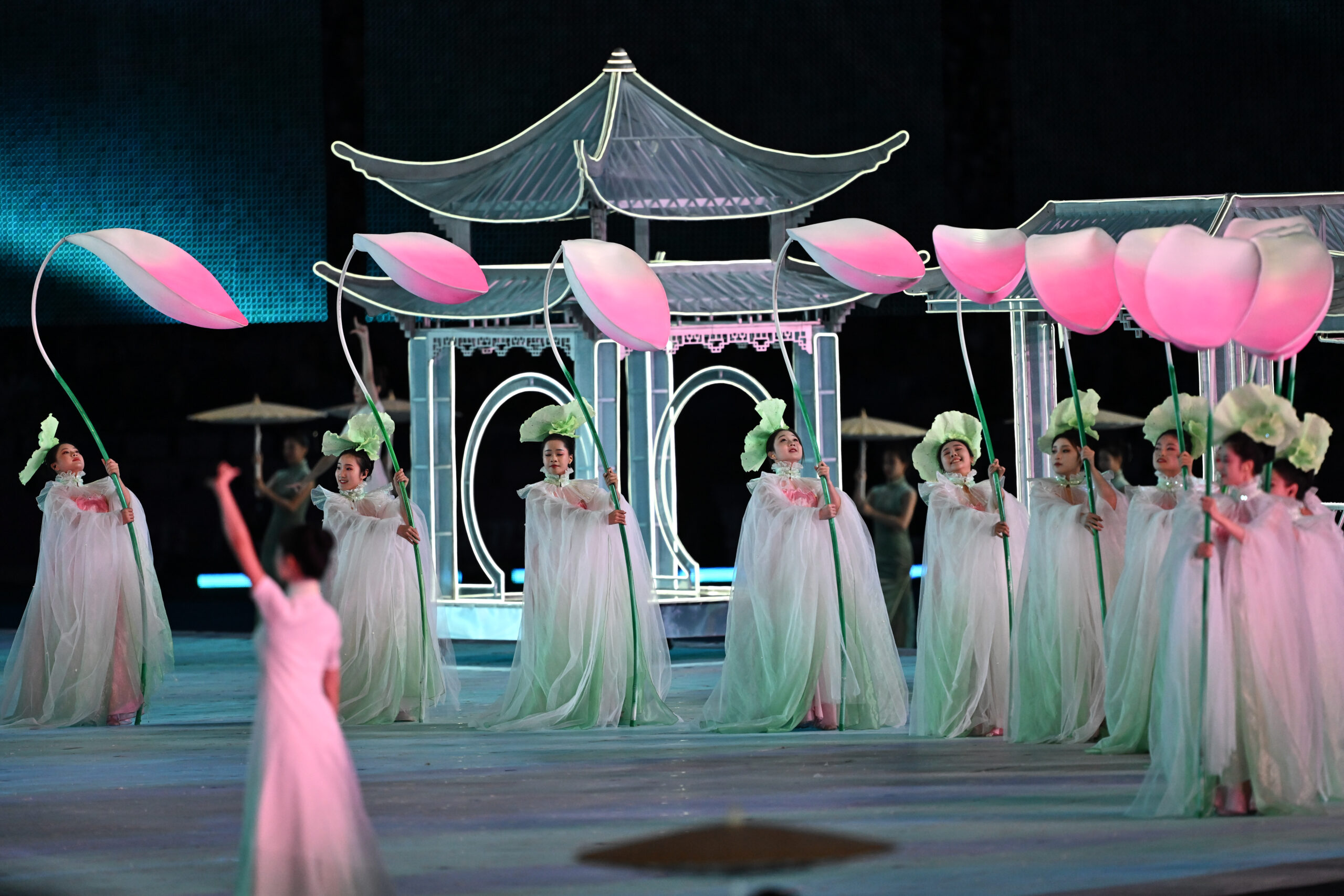 10月28日晚,杭州第4届亚洲残疾人运动会闭幕式在杭州奥体中心体育场举行。图为文艺表演。