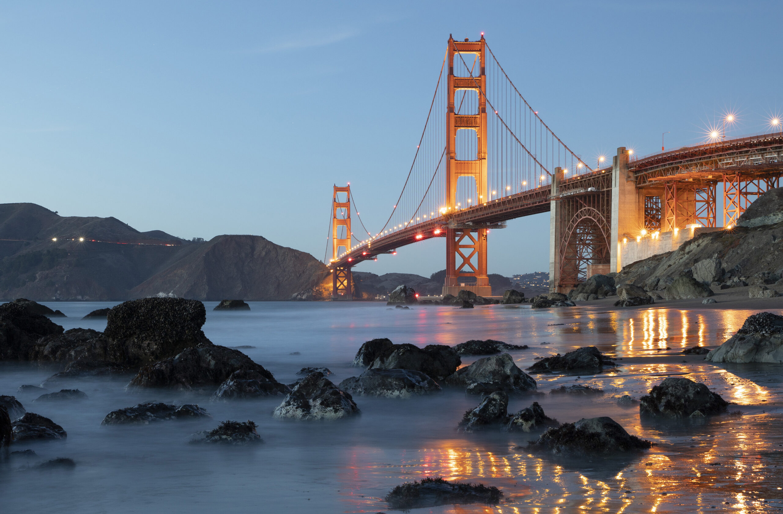 当地时间10月29日,美国旧金山金门大桥在海浪和夜色的衬托下美如一幅画。