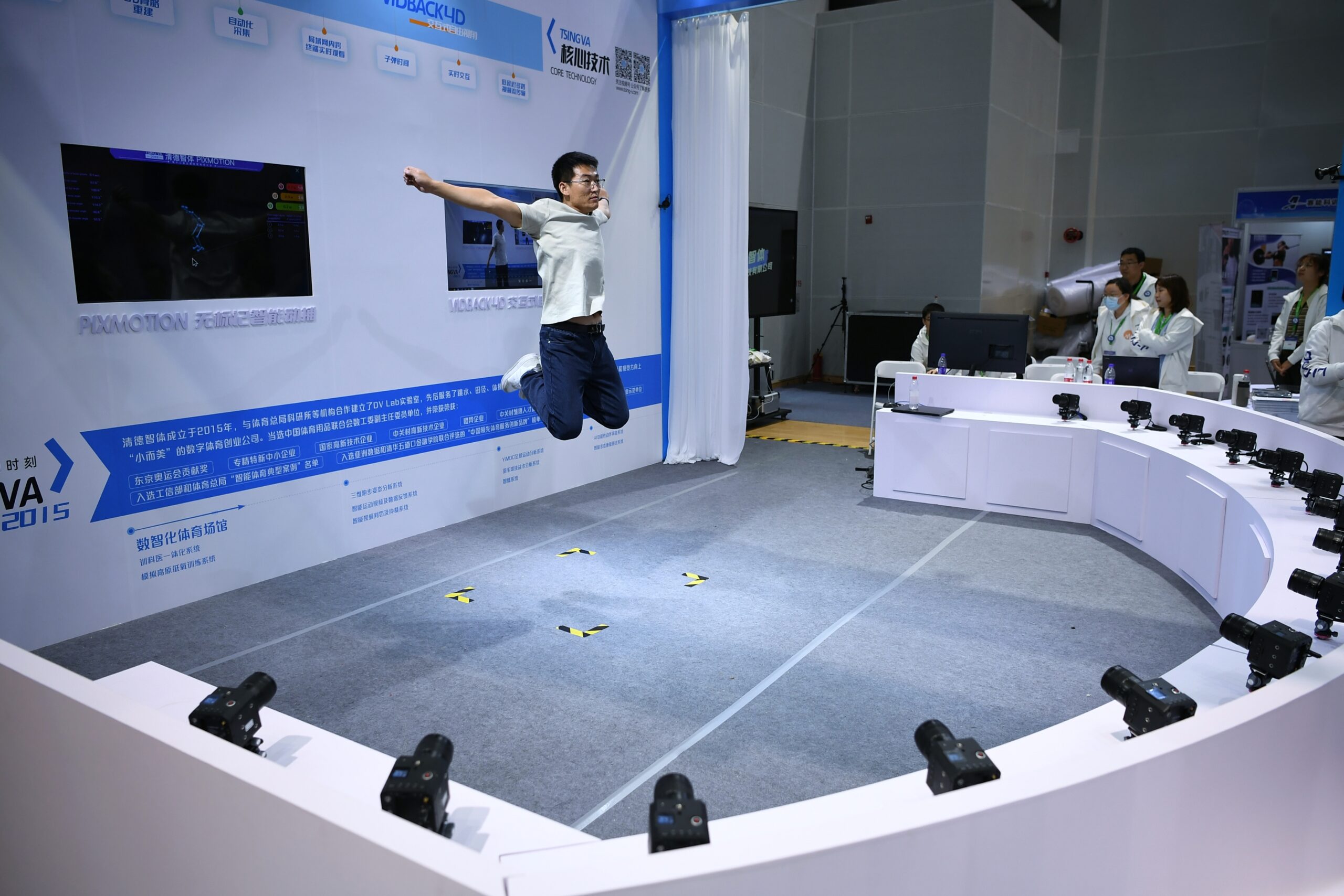 11月4日,与会者体验4D交互式自由视角及无标记智能动捕系统。当日,主题为“科技赋能体育强国”的第十三届全国体育科学大会在天津举行。大会设置了开幕式、主报告、国际交流论坛、体育科技产品展示会等环节。