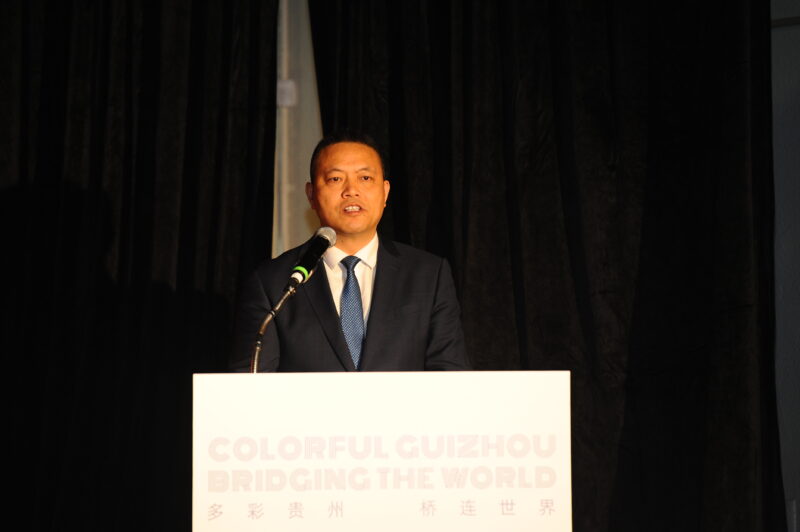 中国驻洛杉矶总领事馆副总领事李志强代表总领事馆欢迎贵州省代表团访问美国。他表示:在中美电影节中美电视节期间举行“多彩贵州”的推介活动有着非常重要的意义。历时19年的中美电影节中美电视节是中美两国政府认可的年度中美影视文化盛事。贵州的影视作品通过这个平台可以让更多的美国民众有机会了解贵州,有兴趣去中国旅行和交流,这是我们非常希望努力推动的。总领事馆也将一如既往大力支持这样的文化交流活动。预祝双方合作成功!