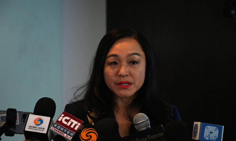 亚凯迪亚市议员王爱琳接受各大媒体记者访问