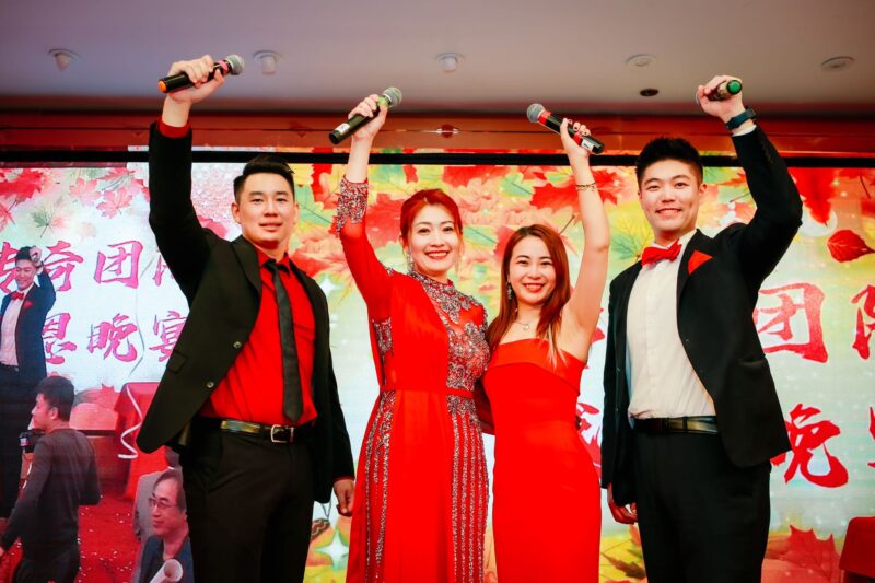 四位主持人Cheng Yang,Jack Huang,Junjun Li,Raymond在舞台上神采飞扬,她们也是专业培训师和团队领导人。