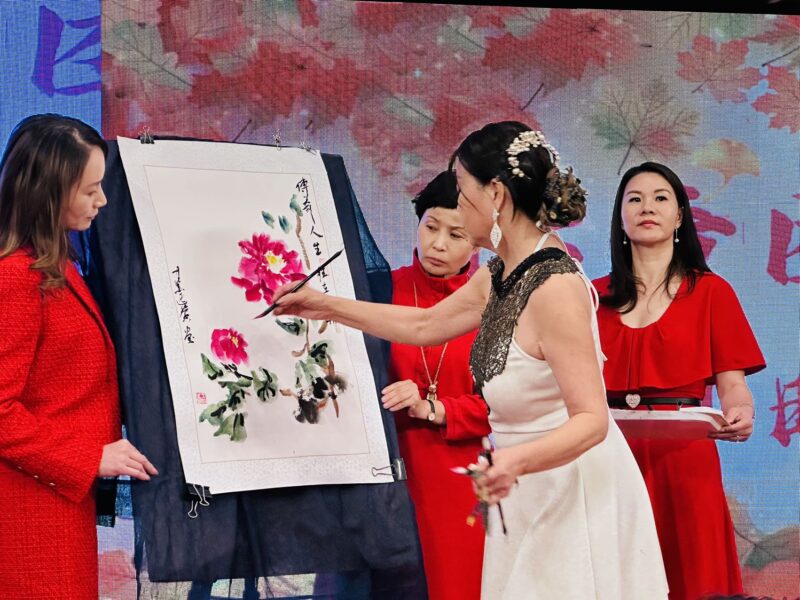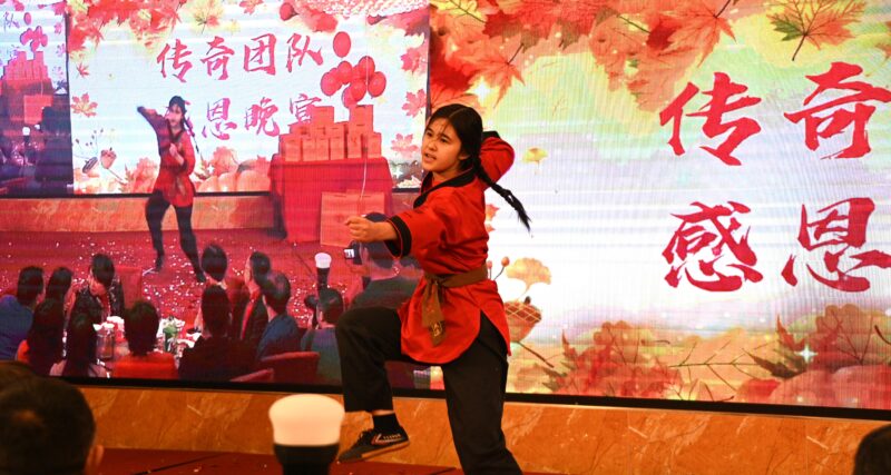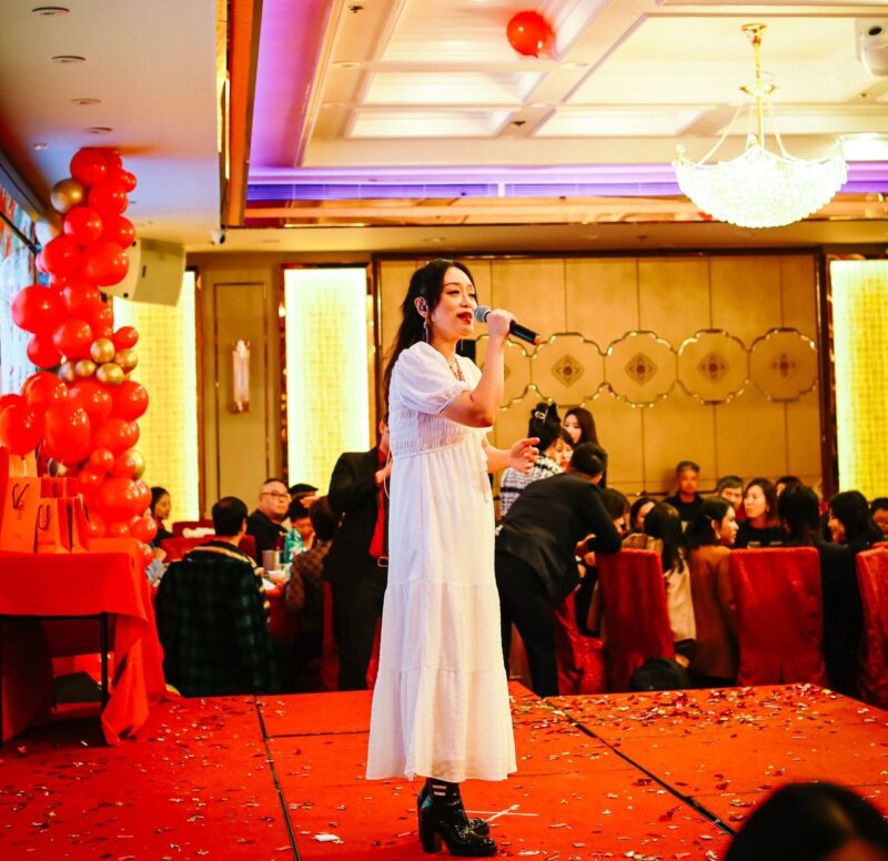 晚会上的文艺表演让人目不暇接,有感人的手语舞蹈,或优美柔情或激动人心的歌唱,中国风的琵琶独奏和西洋风的黑管独奏;威风凛凛的少林功夫,炫酷的小模特走秀,让全场惊叹不已的魔术,燃爆全场的肚皮舞,还有边舞边画的艺术家画了一副国画牡丹「传奇人生」送给资深总裁张岚。