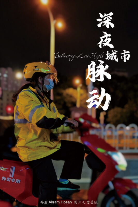 《深夜城市脉动》Delivering Late NightIn countless quiet late nights,there are always many food deliverymen shuttling through the streets of the city. They are like stars in the night sky, with tiny but brilliant light.They contribute the light and heat to maintain the strong “pulse” of the rhythm of urban life.They deliver not only takeout but also warmth late at night.