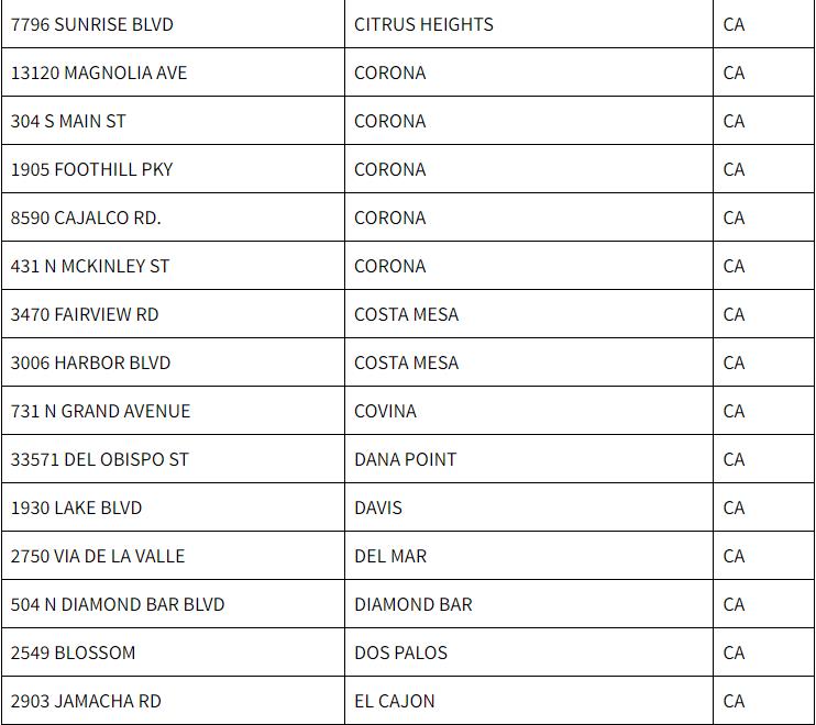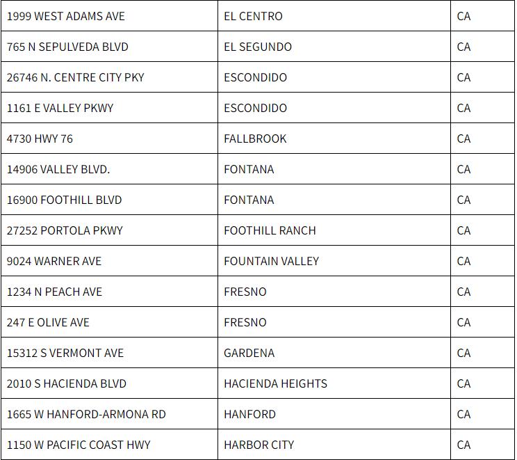 Circle K西海岸业务部副总裁乔治·威尔金斯(George Wilkins )表示:“本着节日的精神,我们非常高兴举办‘加油日快闪活动’,以使客户更轻松地度过庆祝、购物和旅行时光。通过这些独家优惠和我们提供卓越价值的承诺,我们希望为客户创造一个特别而愉快的季节。”以下是参与“加油日快闪活动”的全加州Circle K 门店的完整列表: