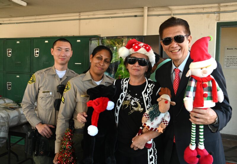 城市新闻12月13日工业市报导,方孝伟会长率哈岗华人协会在洛杉矶县工业分局举行圣诞午餐会,寒冬送暖。去年,哈岗华协与TACF联合成功举办工业分局的寒冬送暖活动,今年哈岗华人协会及TACF(社区治安人人有责)共同举办了此活动,共有20位义工参加活动;送去了60份WaBa牛肉/鸡肉饭,60个毛毯,Macron点心及其他厂家捐助的点心。
